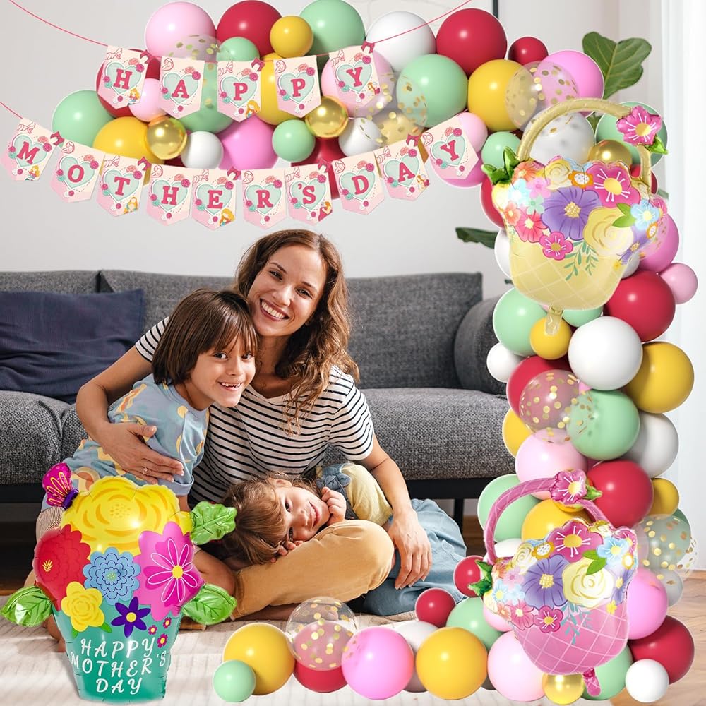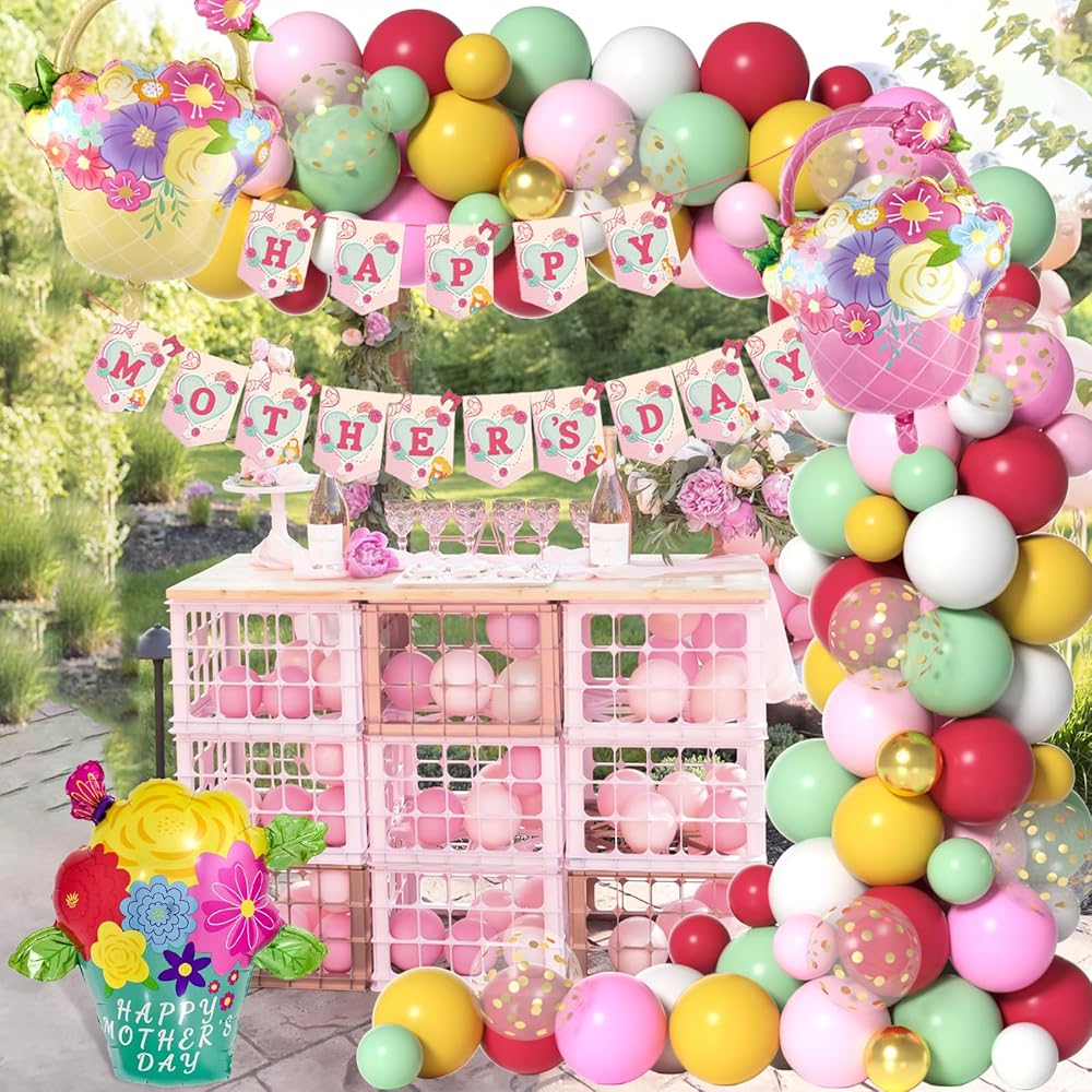 طقم قوس بالون يوم أمهات ، 131 PCS Summer Spring Mother's Pallonons Garland مع بالونات رقائق الزهور لزخارف حفلة عيد الأم من Pink and Red Red Balloon Arch Kit