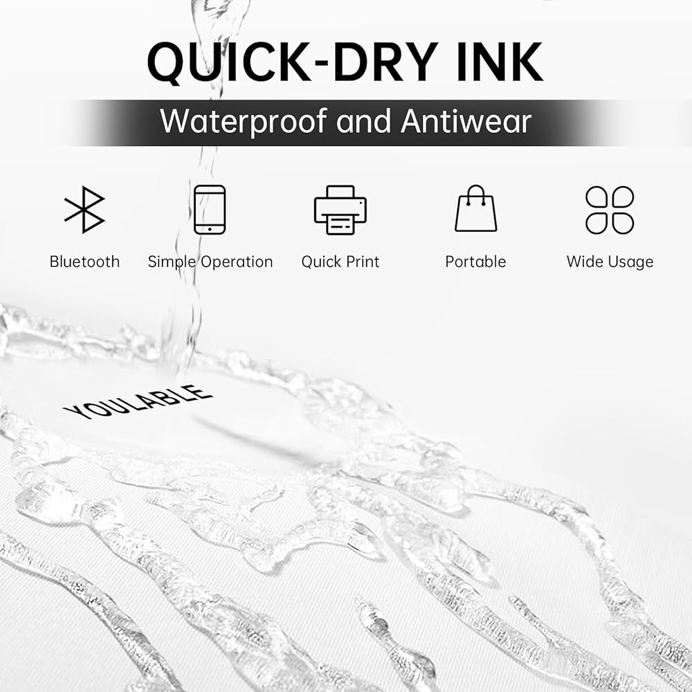 خراطيش الحبر السريع : تأتي طابعة الحبر المصغرة المحمولة المحمولة مع خرطوشة حبر حبر سريعة التجفيف أسود عالي الدقة والتي يمكن أن تمنع بشكل فعال من مشكلة في حجب الحبر أو حظر الفوهة في الحد الأقصى للحد من الحد الأقصى ويوفر تجربة طباعة ناعمة وألوان زاهية ممتازة.