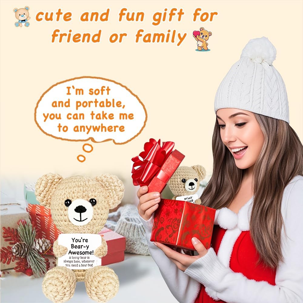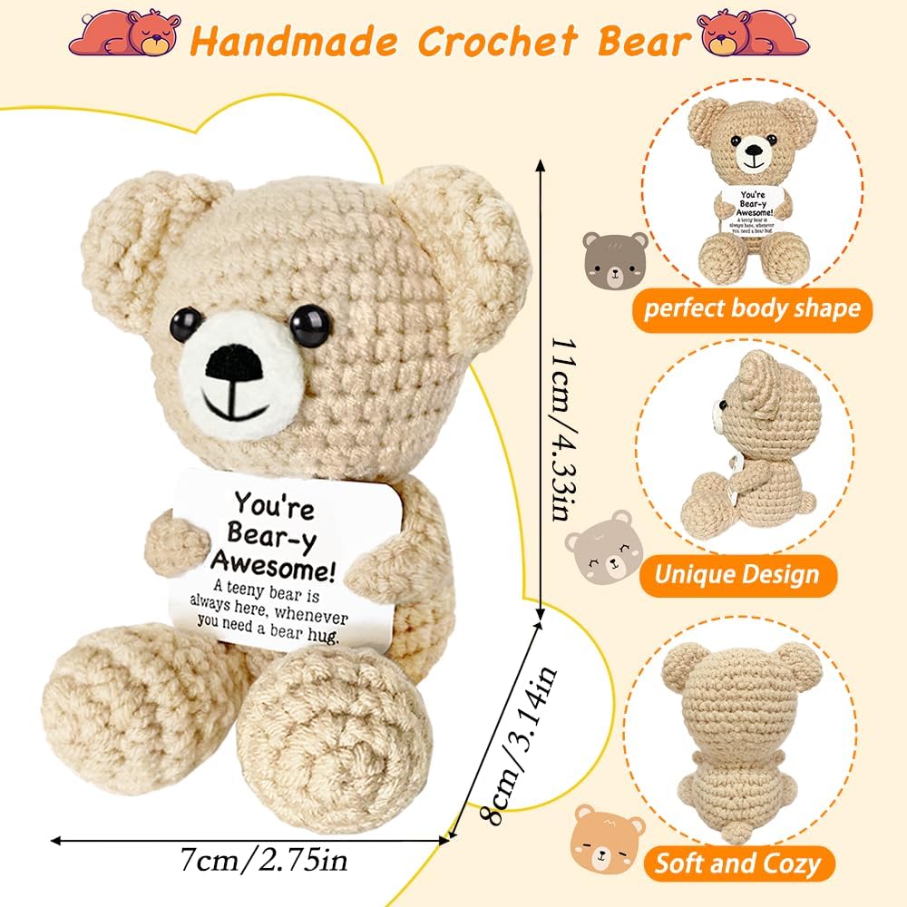 【المواد المميزة】 ناعمة ومريحة ، هذه الهدايا الدب الكروشيه مصنوعة من خيوط صوفية ذات جودة عالية ، وهي طويلة الأمد وموثوقة. يتم استخدام براعة خاصة لجعل الدب الإيجابي يبدو أكثر حيوية وحيوية.