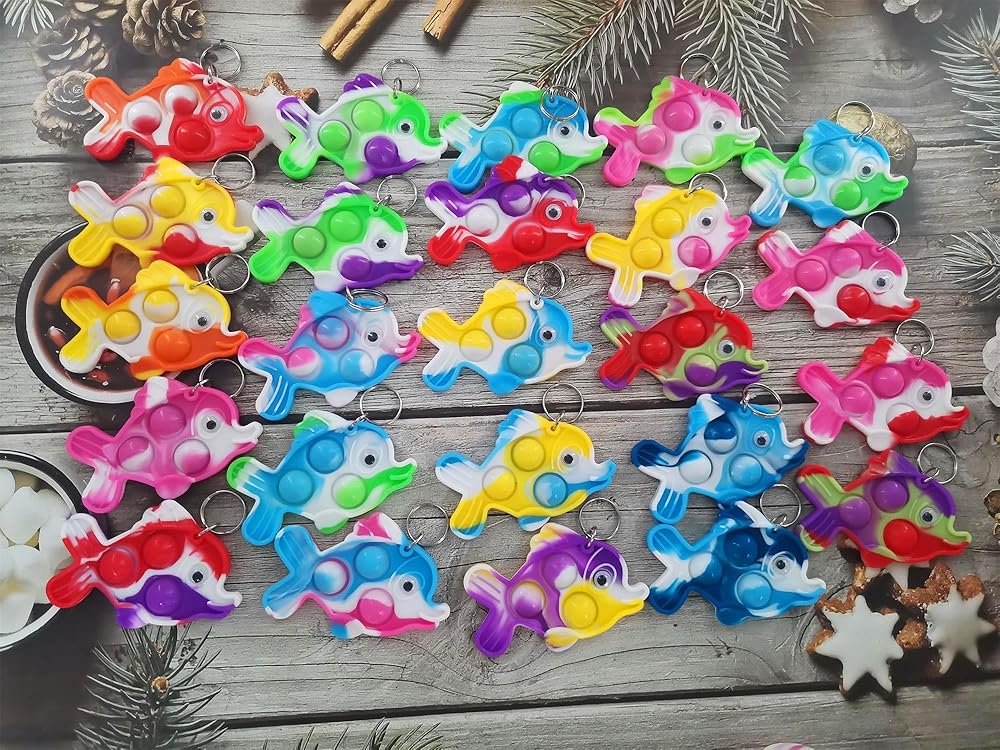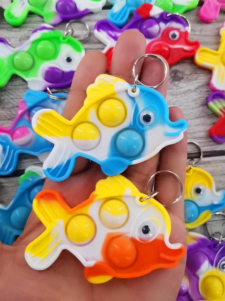 • 2 ، مصنوعة من السيليكون ، حزمة تشمل: 24 حزمة سلاسل مفاتيح البوب ​​السمكة mini , لون عشوائي لإرسال