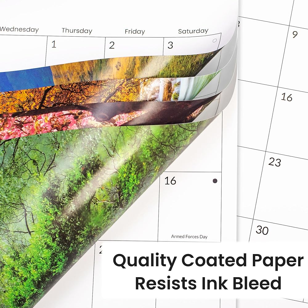 الورق غير المتساقط: ورقةنا مصنوعة من الورق المطلي ذي السماكة التي ستكون أكثر سمكا من الكثير من الورق العادي في السوق. الكتابة بقلم على الورق ناعم دون تشويش الحبر أو النزيف. تحتوي ورقة تقويم 2025 على تصميم فريد وتبدو متحمسة