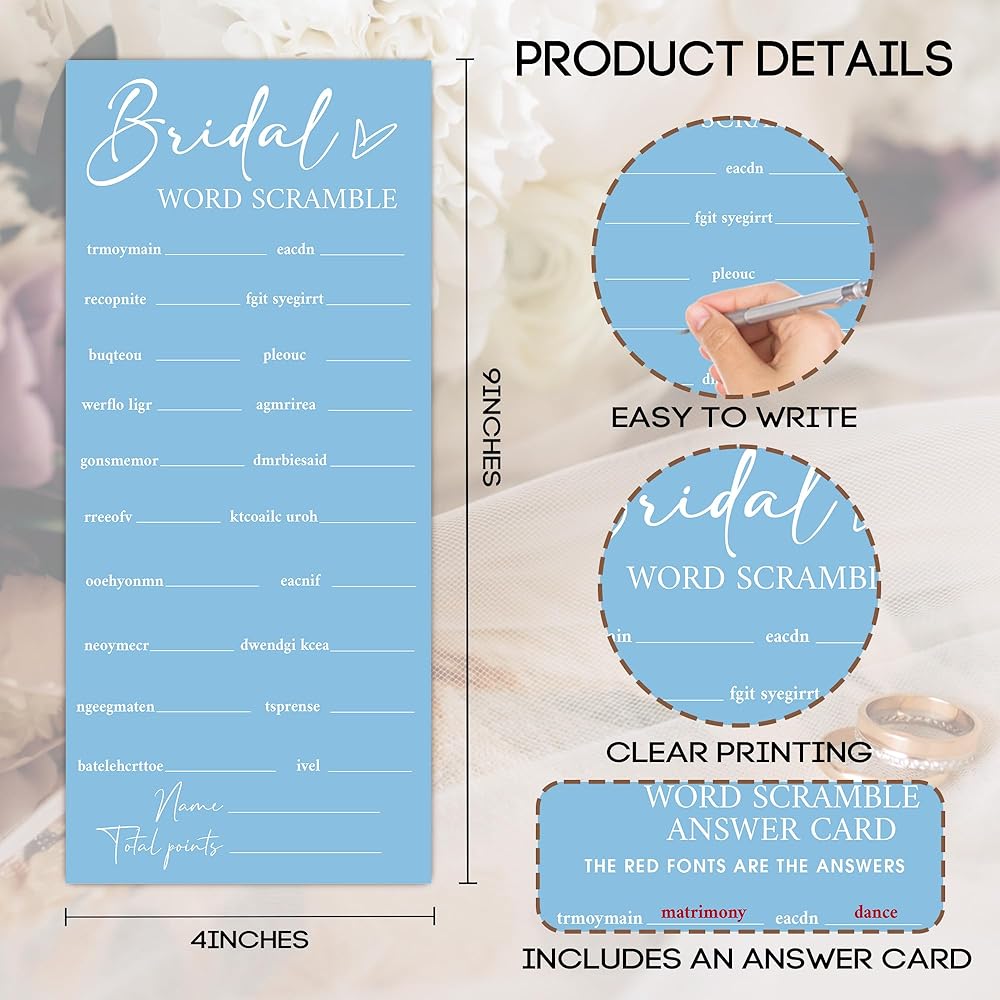 مثالي لمختلف الاحتفالات: يمكن توزيع هذه اللعبة سهلة أثناء دش الزفاف ، ودش الزفاف ، وحفل الخطوبة ، وحفل العازبة ، وحفل الذكرى وأي تجمع معا للاحتفال بحفل الزفاف القادم!