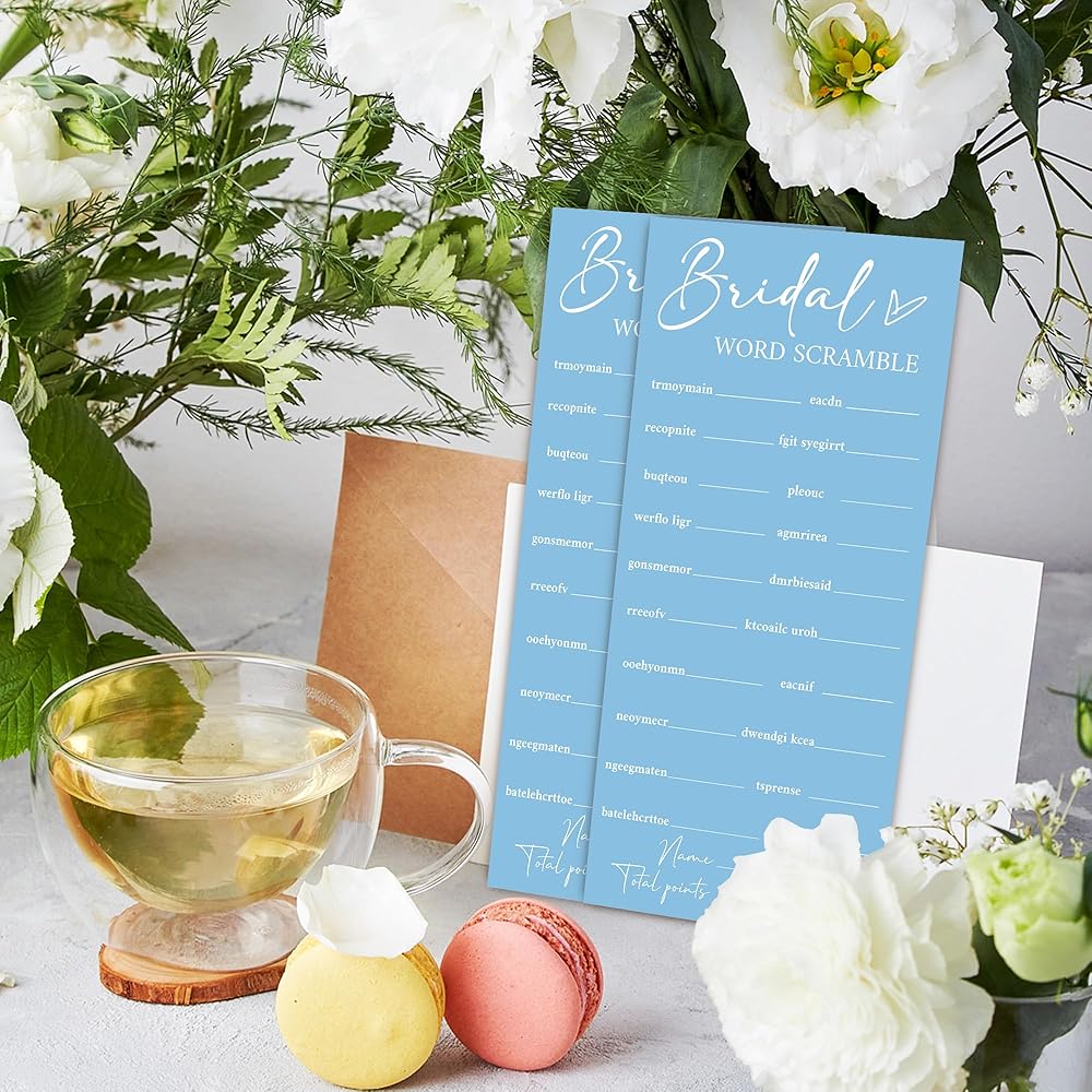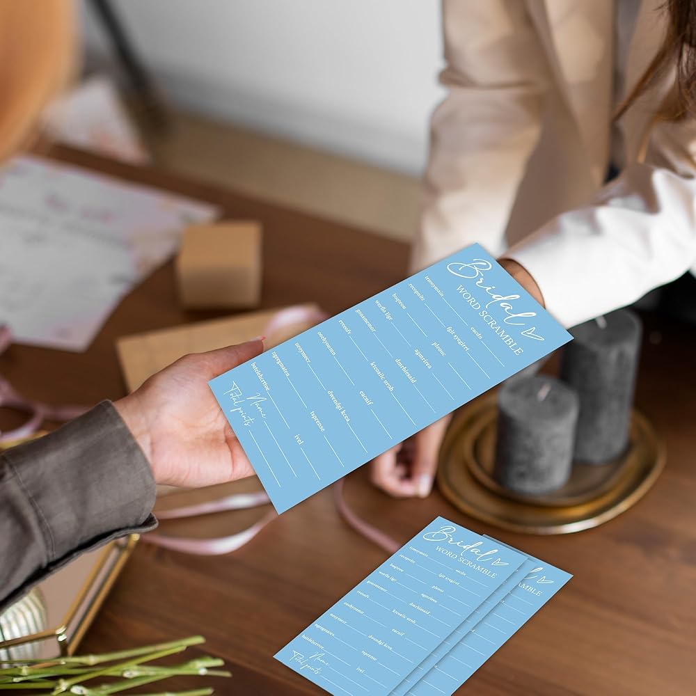 الحجم المثالي : بطاقات ألعاب دش الزفاف قياس 4 × 9 بوصات وكل حزمة تحتوي على 25 بطاقة لعبة.