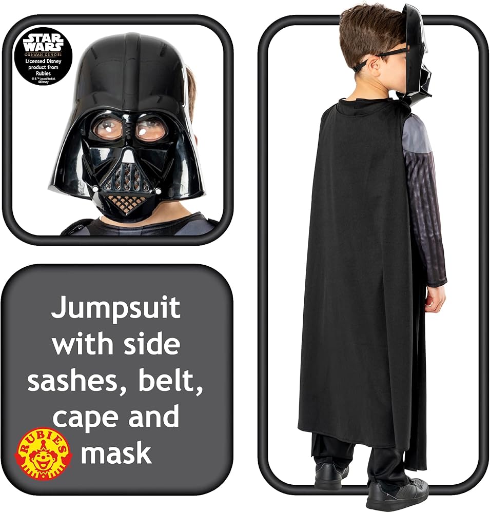 Official Star Wars Obi Wan Kenobi Product created by Rubies. Take over a galaxy far, far away as Darth Vader, the antagonist from the hit Disney+ Star Wars series, Obi-Wan Kenobi. Arch-nemesis of Obi-Wan and hunting down all Jedi across the galaxy, Darth Vader is the ultimate bad guy and now you can get your little one dressed up as him! This deluxe costume has everything you need to become the antagonist of the Star Wars series. This is the perfect gift for fans of the series.