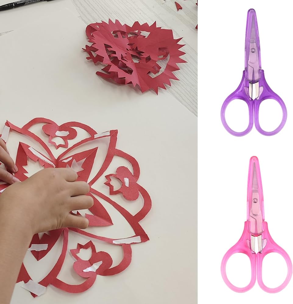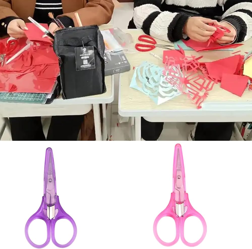 Introducing our 2-Piece Small Craft Scissors Set, a versatile and compact tool perfect for any crafting enthusiast. Featuring mini detail scissors in pink and purple, this set is ideal for paper cutting, scrapbooking, embroidery, sewing, and more. Measuring just 3.27" in length, these scissors are easy to carry and fit perfectly in your crafting bag or DIY tool kit. The included protective covers not only ensure your safety but also keep the fine tips protected when not in use. Crafted from high-quality stainless steel, the blades remain sharp and resist dulling, providing precision in every cut. Whether you're a seasoned pro or a beginner, our multi-purpose scissors set is a must-have for all your crafting needs.