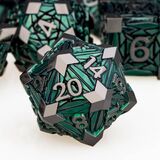 7pcs metal dnd dice مجموعة مع مربع ، حطام RPG Green Purple D و D Dice للاستخدام مع ألعاب D&D دور لعب لعبة Polyhedral Dice Set D20 D12 D10 D8 D6 D6