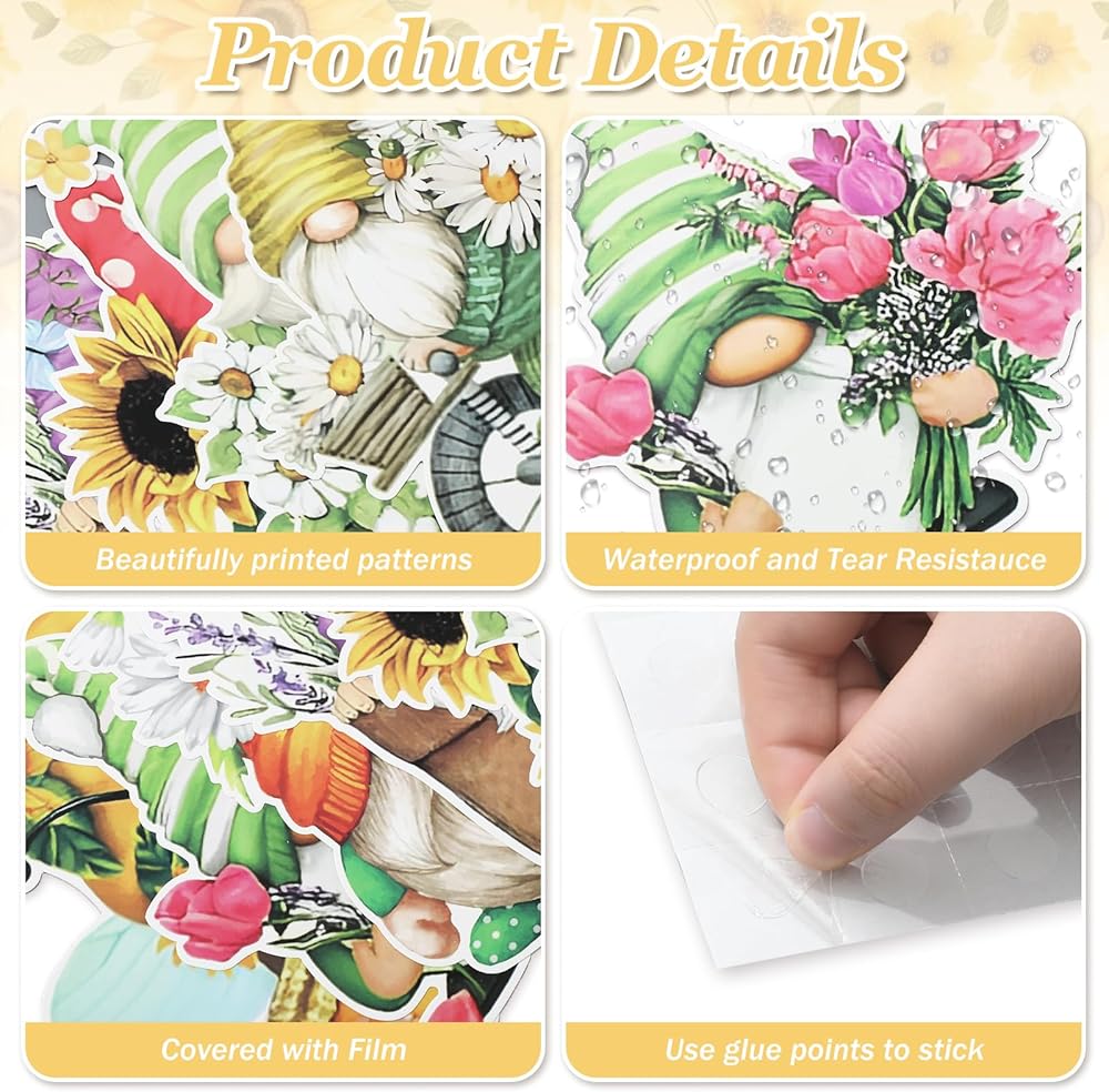 VIBRANT DESIGN: Our decoration kit features vibrant colors and charming designs, colorful gnomes, flowers, and butterflies create an eye-catching spring display, making any space feel fresh and inviting