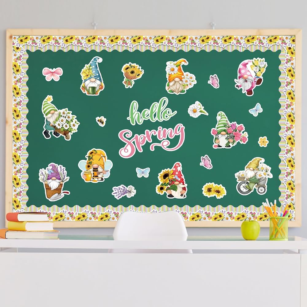 These cutouts and bulletin board borders take spring theme design, easy to stick and peel, safe to use, create a happy atmosphere.