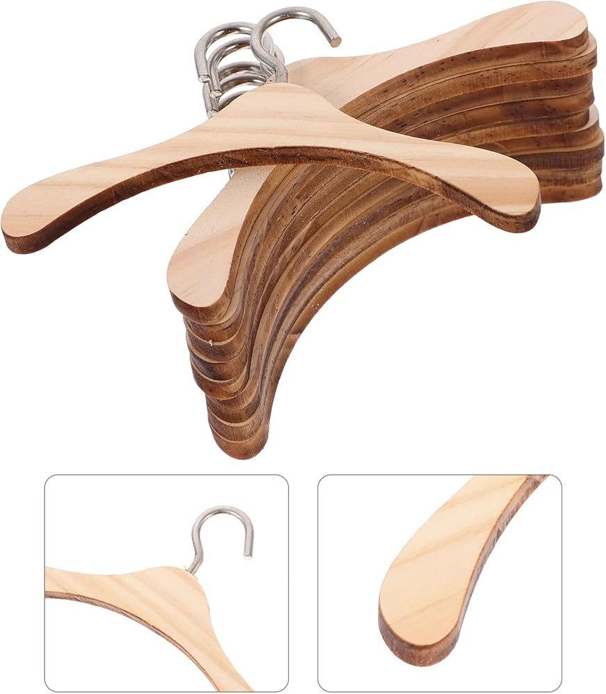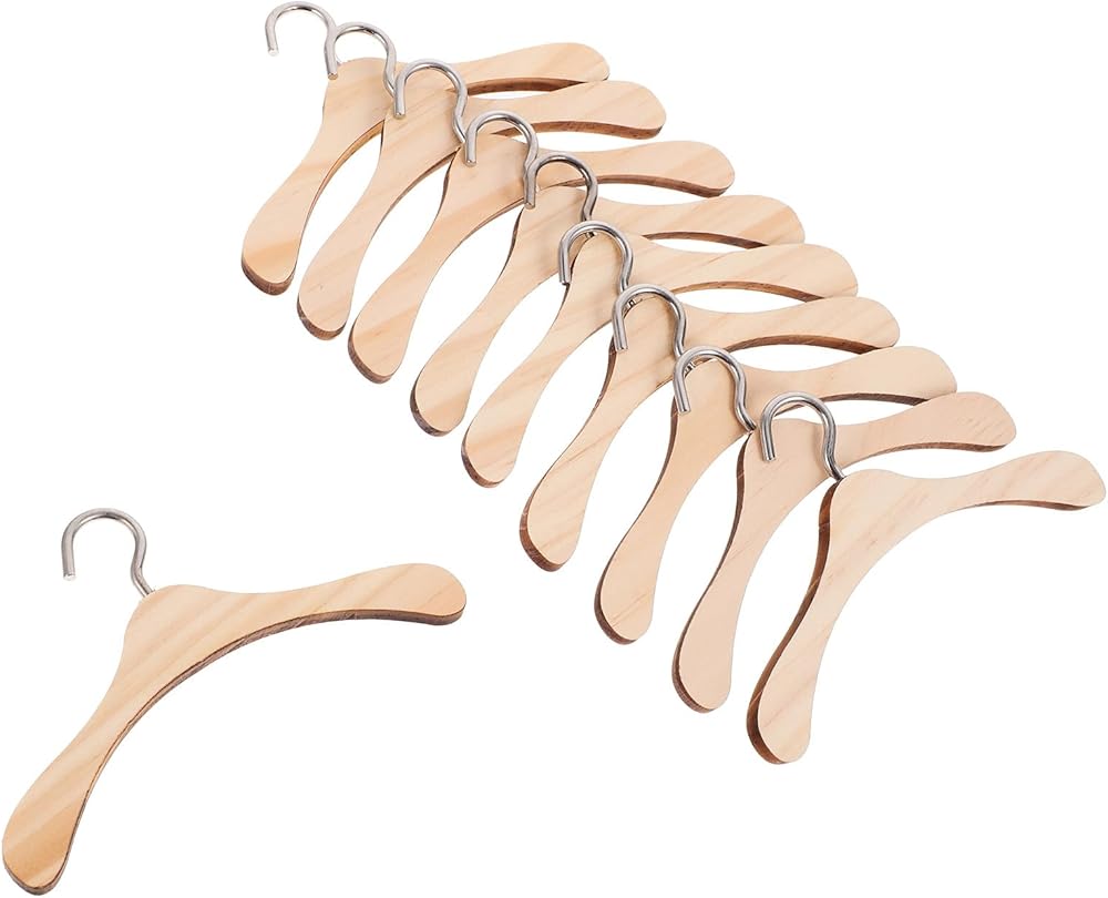 10pcs دمى الخشبية ملابس شماعات الملابس شماعات صغيرة دمية ملحقات خزانة دمية خزانة دمية (10 سم)