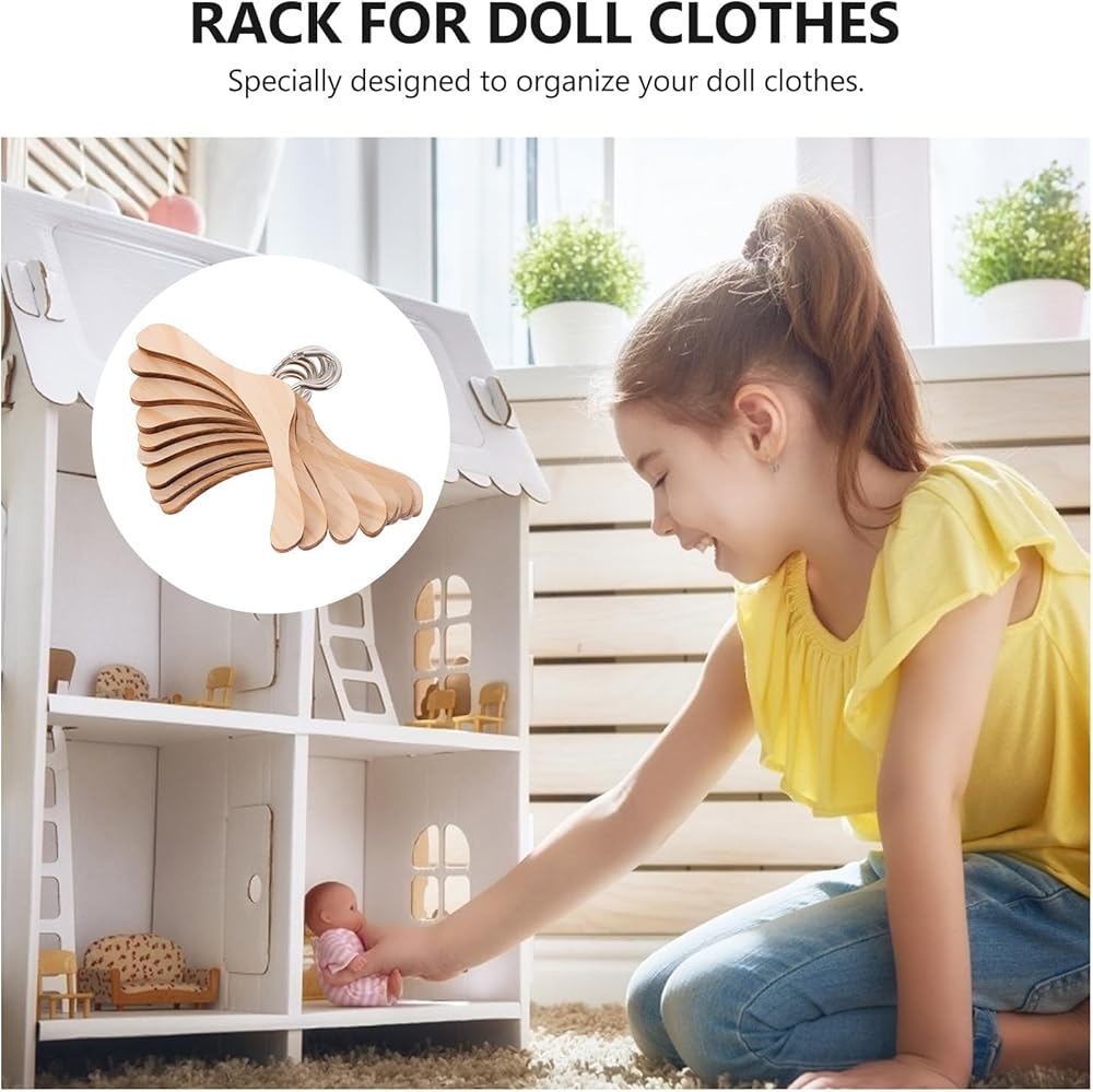 • Made of for durable and practical use. doll clothes hangers