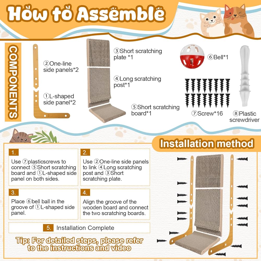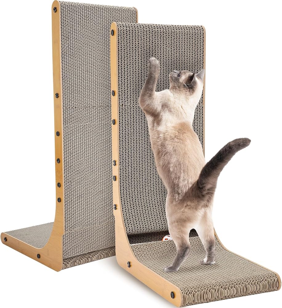 This unique L-shaped cat scratching board is to choose an exclusive paradise for cats and a peace of mind for your home. Our cat scratching board has three different sizes, which can be used by cats of all ages and sizes.