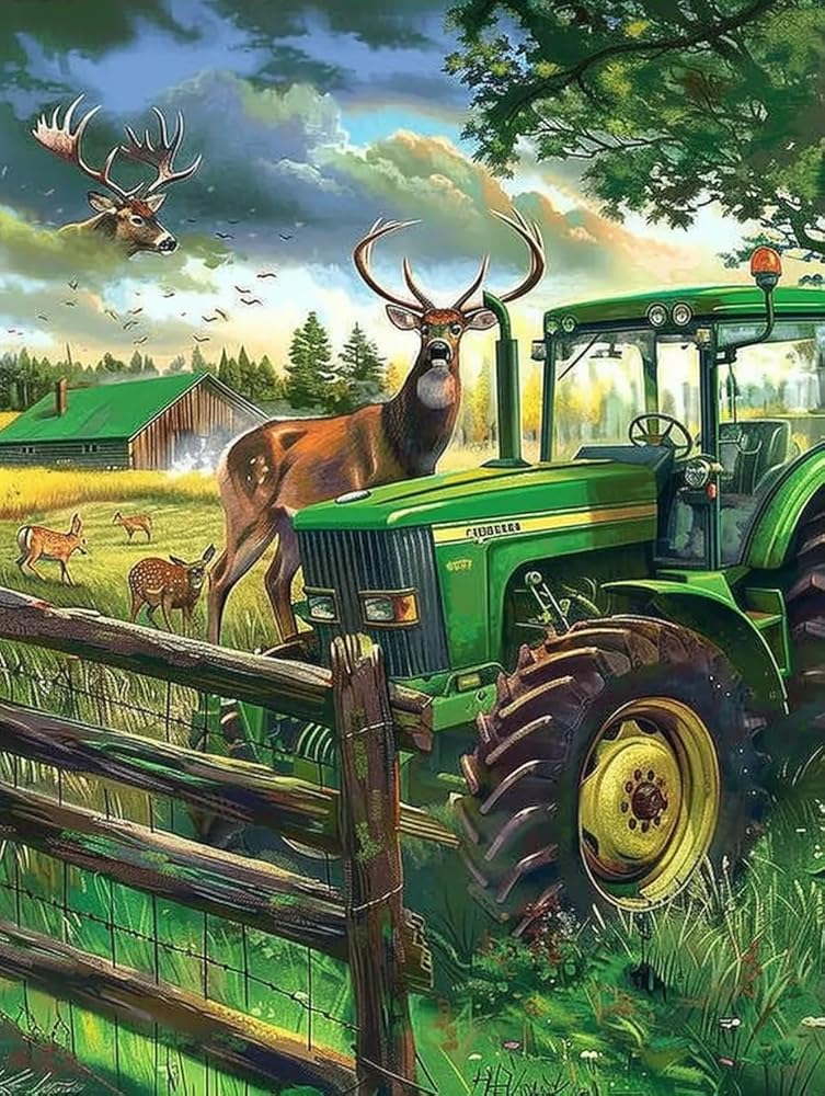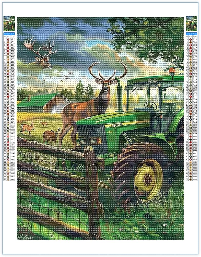 【Super Sparkle Diamonds】 The super sparkle Tractor Deer 5D diamond art painting are made of 25 high-quality round rhinestones in various colors which are as vivid as shown in the picture,more vibrant and brilliant,we offer extra drills for each color.