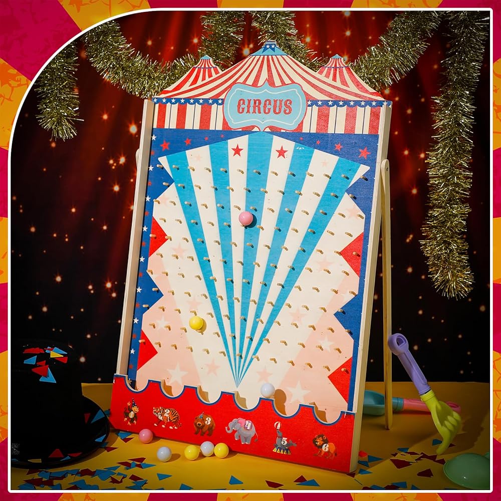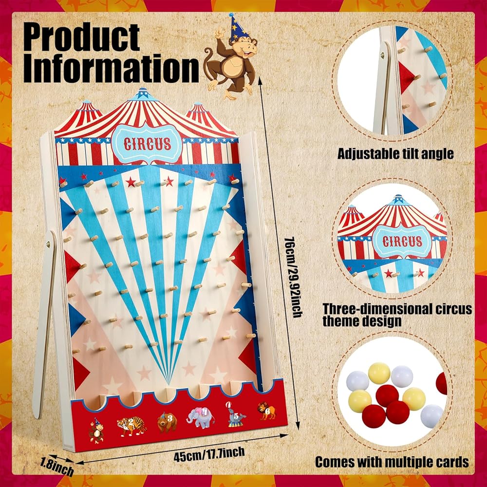 المواد والحجم: لعبة Carnival Circus مصنوعة من الخشب عالي الجودة ، آمنة وموثوقة ، قوية وليس من السهل كسرها ؛ يقيس تقريبا. 15.7 × 10 بوصات وحجم مناسب لجذب الانتباه والرقيقة والمحمولة