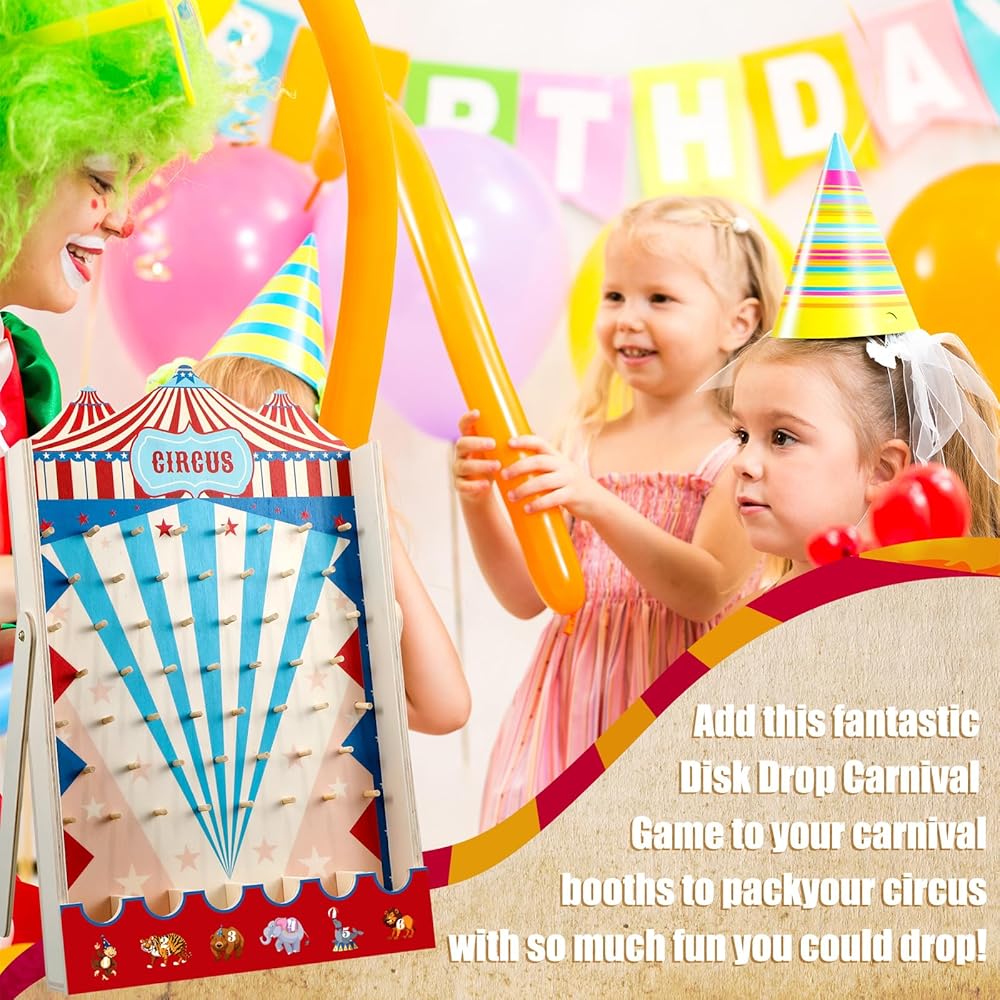 نشاط الكرنفال الممتع: يضم موضوع سيرك ملون ، لعبة إسقاط القرص هذه هي نشاط ممتع للغاية لأحداث الحفلات ؛ قم بإنشاء العديد من الألعاب مع ألعاب الكرنفال الأخرى للبنين والبنات للاستمتاع بها قبل الصيد وبعدها ؛ سوف يرمون القرص بسعادة على السبورة لمحاولة الفوز بجوائز الألعاب مثل ألعاب الحفلات والحلوى
