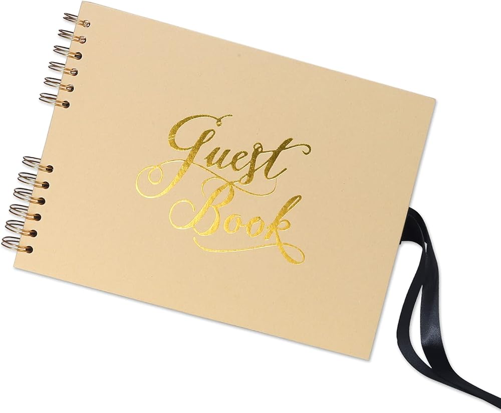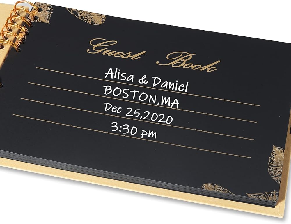 - 【حلزوني Hardbound】 يمكن أن يحافظ كتاب الضيوف الصلب الحلزوني على مسطح حتى مليء بالصور. إنه أفضل من كتاب ملزم.