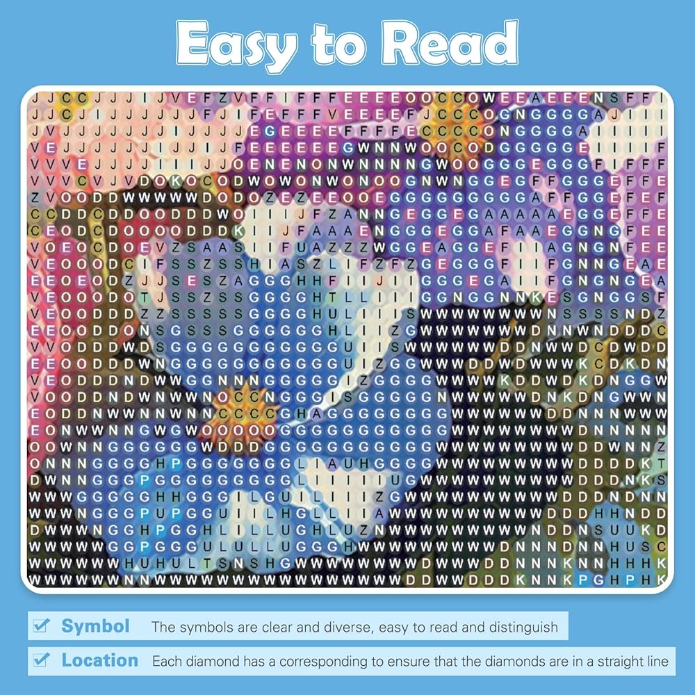 رموز سهلة القراءة-من أجل جعل عملية جعل لوحة فن الماس أكثر إثارة للاهتمام وسهولة ، نستخدم الرموز والرسومات المختلفة لتمييز مناطق ألوان مختلفة ، قماش أكثر سمكًا ، ومناطق طلاء أكبر ، لذلك يسهل البدء في البالغين والمبتدئين