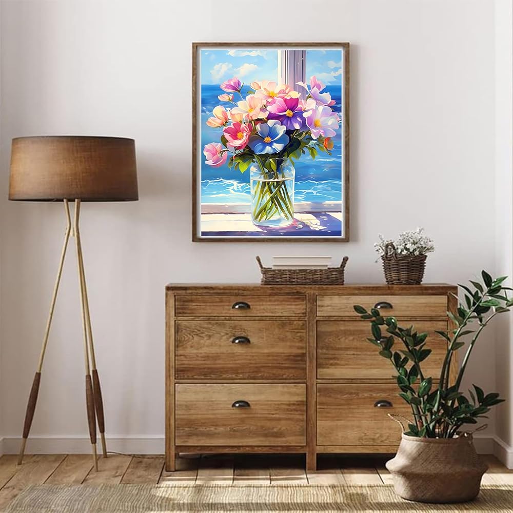 كلاكينلا زهور الأزهار الماس مجموعات الطلاء للبالغين ، وأزهار ملونة في مزهرية 5D مجموعات الطلاء الفنية الماس للمبتدئين ، طقم الطلاء GEM الزهور Diamond Dots Painting for Home Decor 12x16inch