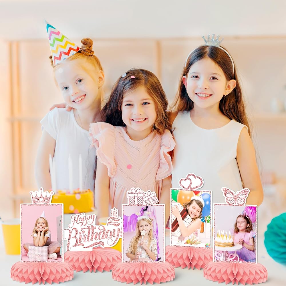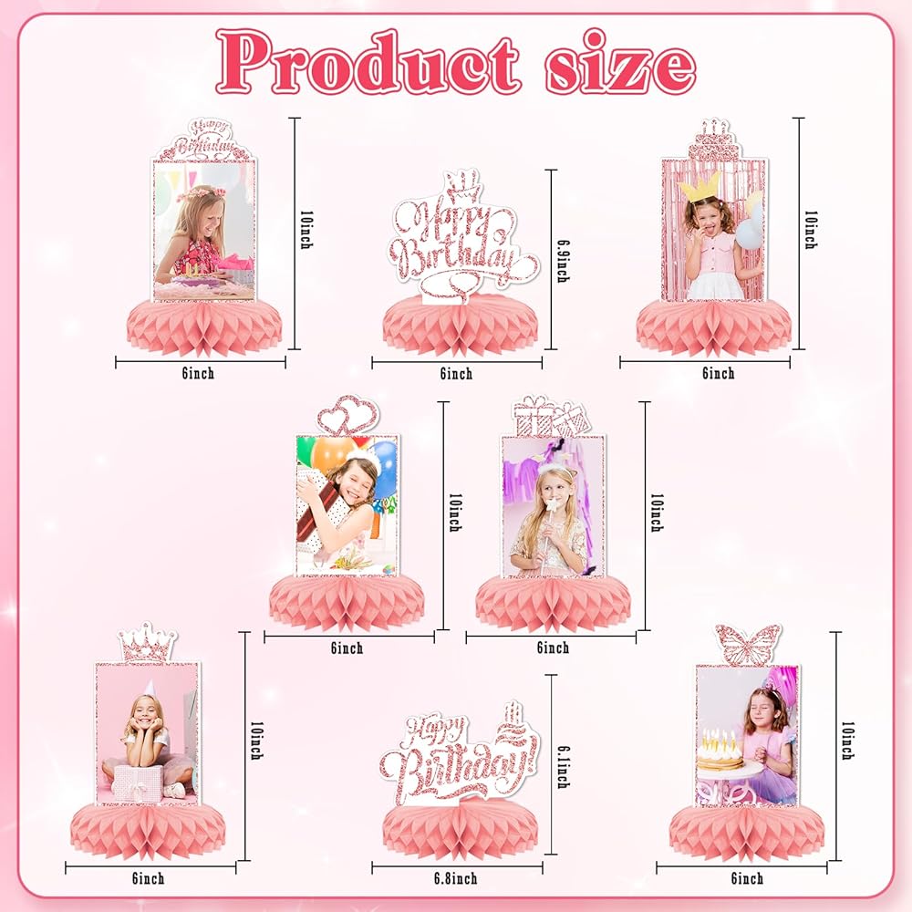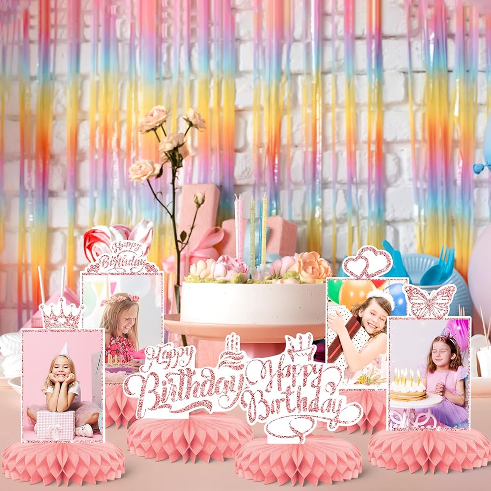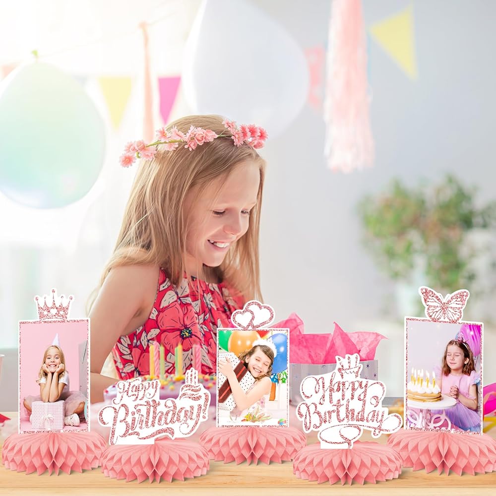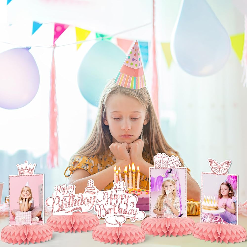 الفتيات الوردي عيد ميلاد سعيد موضوعات حفلات الحفلات ، 9 أجهزة كمبيوتر KSKSPE عيد ميلاد سعيد مركزية للجداول قرص العسل المركزية 3D عيد ميلاد سعيد موضوع الحفلة اللوازم الفتيات