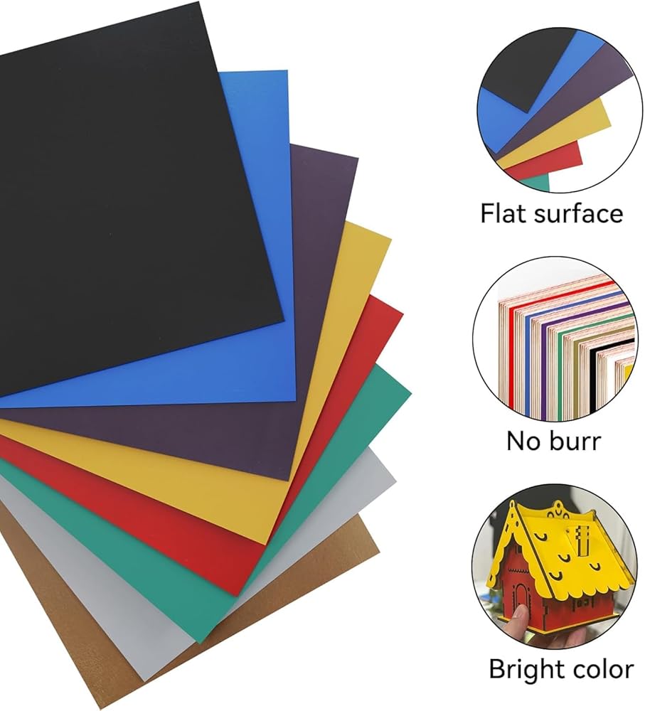 • 4️⃣【Vibrant Colors & Multiple Pack Options】 Available in black, red, blue, white, yellow, green, purple, and gold, our plywood sheets come in various pack sizes (4,8 sheets) to suit different creative needs. Whether for personal crafting or professional projects, we've got the right quantity for you.