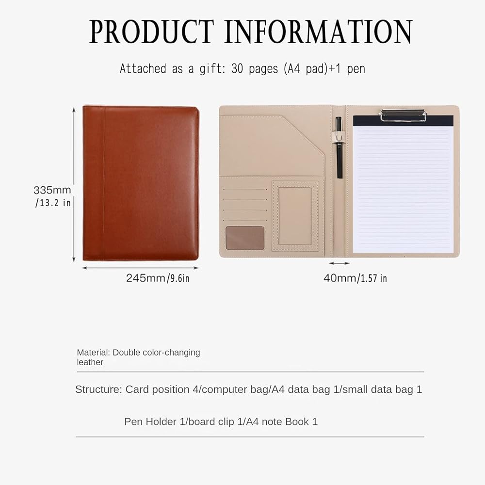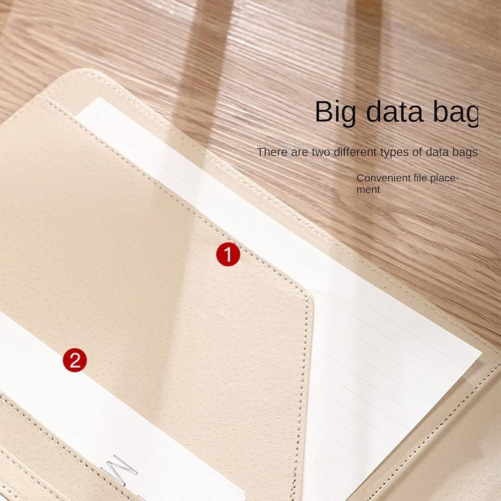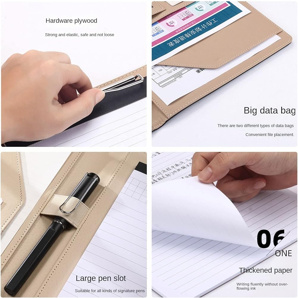 【جودة ممتازة】هذه الحافظة المزودة بوحدة تخزين مصنوعة من جلد صناعي عالي الجودة، ناعمة ومريحة ومتينة، مع مشبك أدوات مرن قوي، بالإضافة إلى 30 صفحة من الملاحظات اللاصقة مقاس A4 وقلم توقيع