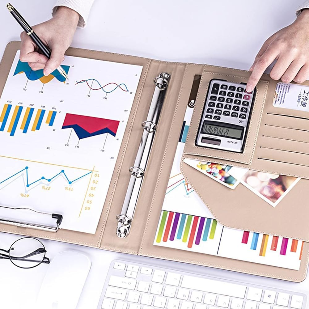 【قابل للاستخدام على نطاق واسع】يمكن استخدام منظم المجلدات على نطاق واسع كمنظمة مكتبية، أو منظم ملفات، أو منظم محفظة، أو دفتر ملاحظات للعمل، أو حافظة محفظة فنية، أو حافظة للمقاولين، أو مجلد استئناف، يمكنه قص 60-80 ورقة من الورق، مثالي للشركات. الموظفين والباحثين عن عمل وعروض الأعمال والمفاوضات، سهل الاستخدام، واثق وأنيق