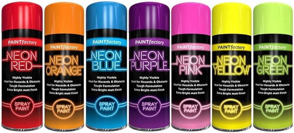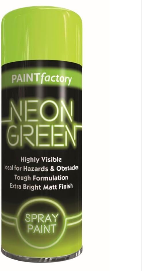 Product Description Highly visible, extra-bright matt finish paint. Ideal for marking hazards, obstacles and craft projects. Suitable for interior and exterior use. Excellent coverage and adhesion. Suitable for use on metal, wood and most plastics. Transform your projects with the Paint Factory Fluorescent Neon Blue Spray Paint! This vibrant 200ml aerosol is designed for both indoor and outdoor use, providing a long-lasting, eye-catching finish. Perfect for art, crafts, DIY home projects, or marking surfaces, this spray paint features a unique fluorescent formula that glows under UV light, making it ideal for parties, festivals, or any event where you want to stand out. The easy-to-use spray nozzle ensures even coverage, allowing you to achieve professional results with minimal effort. Whether you're enhancing your artistic creations or adding a pop of color to your home décor, this neon yellow spray paint will not disappoint. With a quick drying time and excellent adhesion, you can layer colors without worrying about smudging. Create stunning visual effects and let your creativity shine with Paint Factory's vibrant neon spray paint!