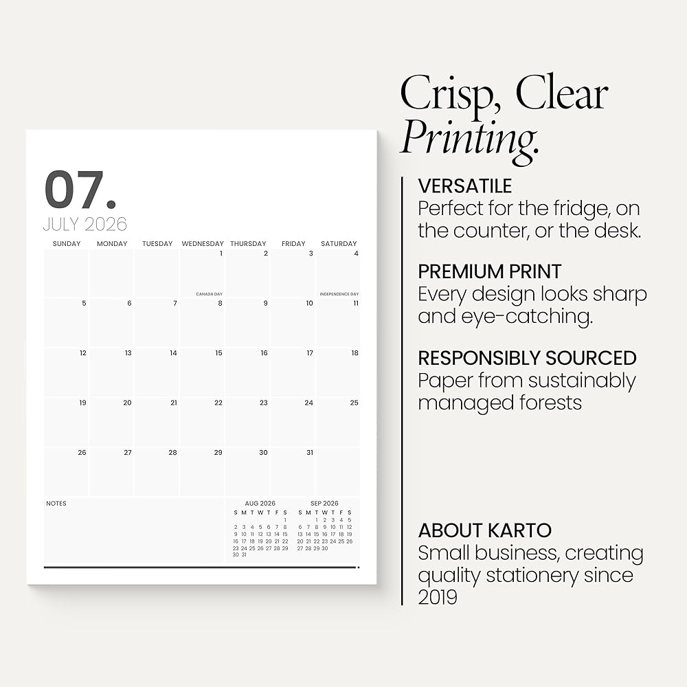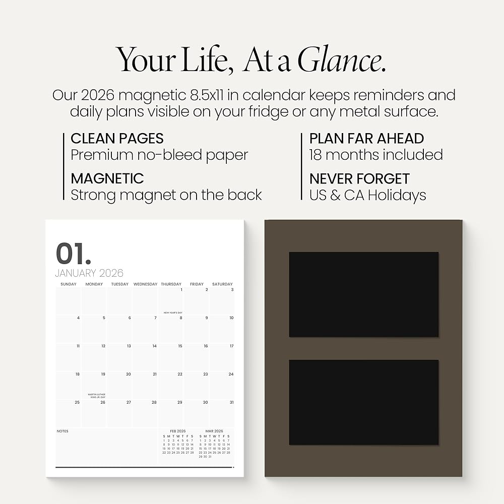 AT A GLANCE: With the minimalist & magnetic fridge calendar 2025-2026 (8.5" x 11"), staying organized and on top of things is a breeze! At a glance, see all of your appointments, deadlines, birthdays, US & CA holidays, and other important occasions.