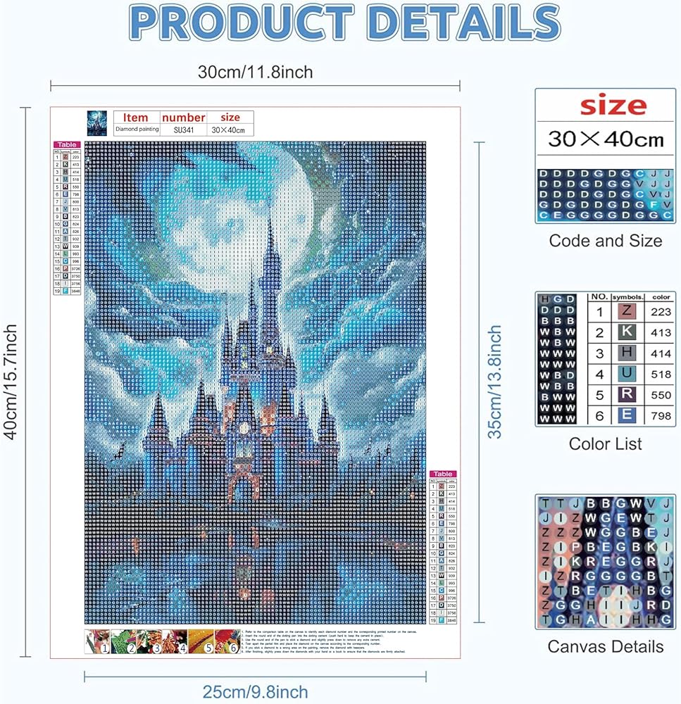 مجموعات الطلاء فن Clakinla Castle Diamond Art للبالغين ، مجموعات الطلاء بالفن الماسي 5D للمبتدئين ، اللوحة الفنية GEM Diamond Dots for Home Wall Decor 12x16inch