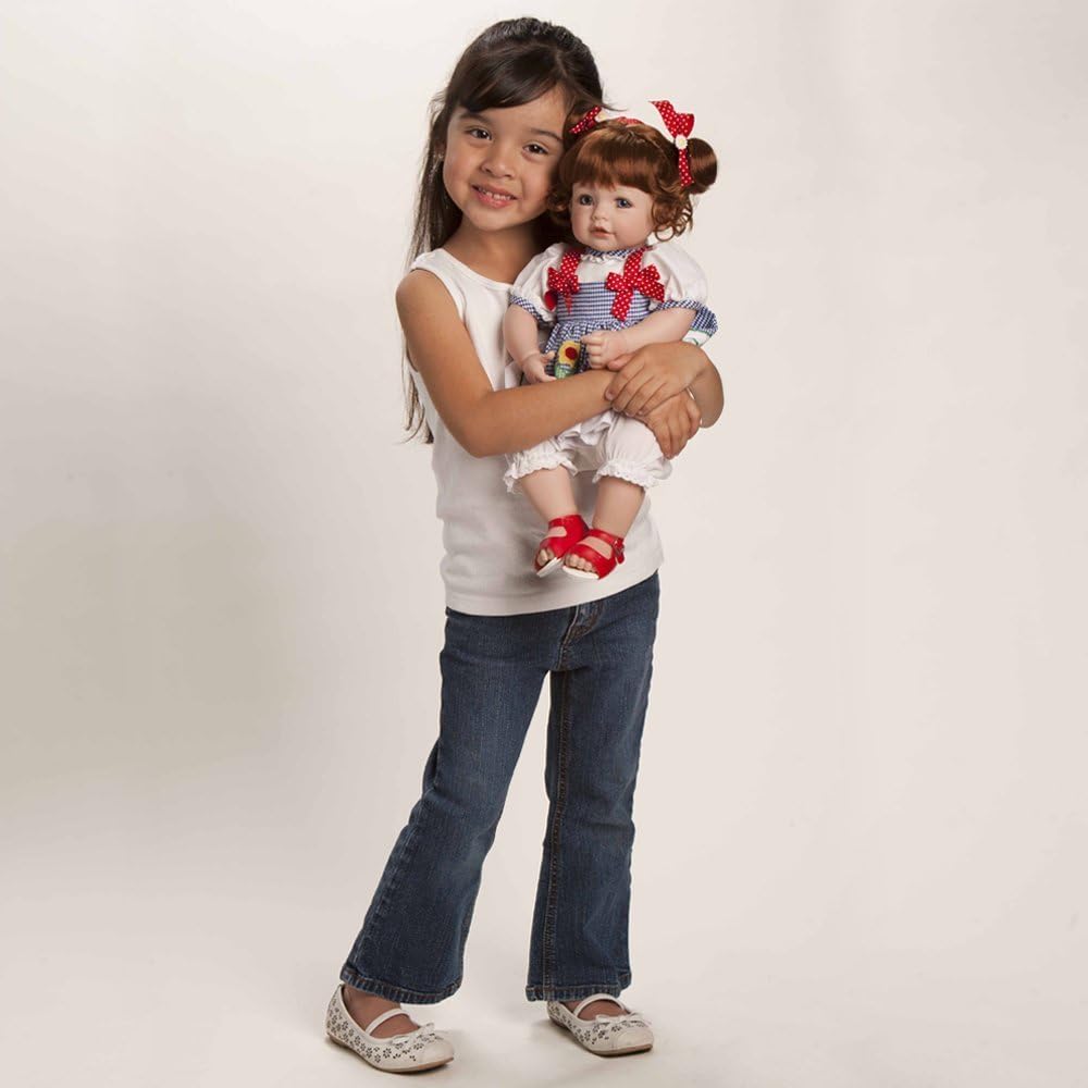 Heirloom quality and made for play, Toddlertime dolls are Adora's premium collection of realistic baby dolls that make the perfect gift for girls and boys to pass down the generations. We perfected every detail to create a high-end bonding experience between your little one and their toddler doll. From playing with her silky reddish auburn doll hair to snuggling her weighted cuddly body, there are unlimited opportunities to nurture sweet playtime with this lifelike baby doll girl.Adora Toddlertime Daisy Delight Doll measures 20 inches and is crafted from our exclusive baby powder-scented CuddleMe vinyl that'll last for years to come. It was designed to feel just like a real baby with a moveable head, a slightly opened baby mouth, handprinted details, a baby diaper, and exclusively designed fashions.