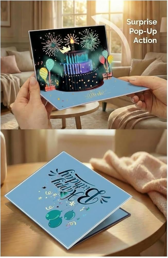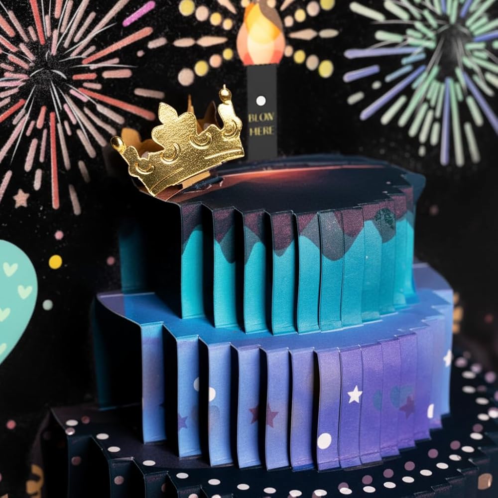 3D يطفو على تشغيل بطاقات عيد ميلاد سعيدة للرجال - الألعاب النارية والموسيقى مع Blow the Candle و Gold Crown و 3D Balloons و Blue Design - بطاقة عيد ميلاد سعيد له - أبي ، زوج ، أولاد وابنه (8.27 "× 5.27")