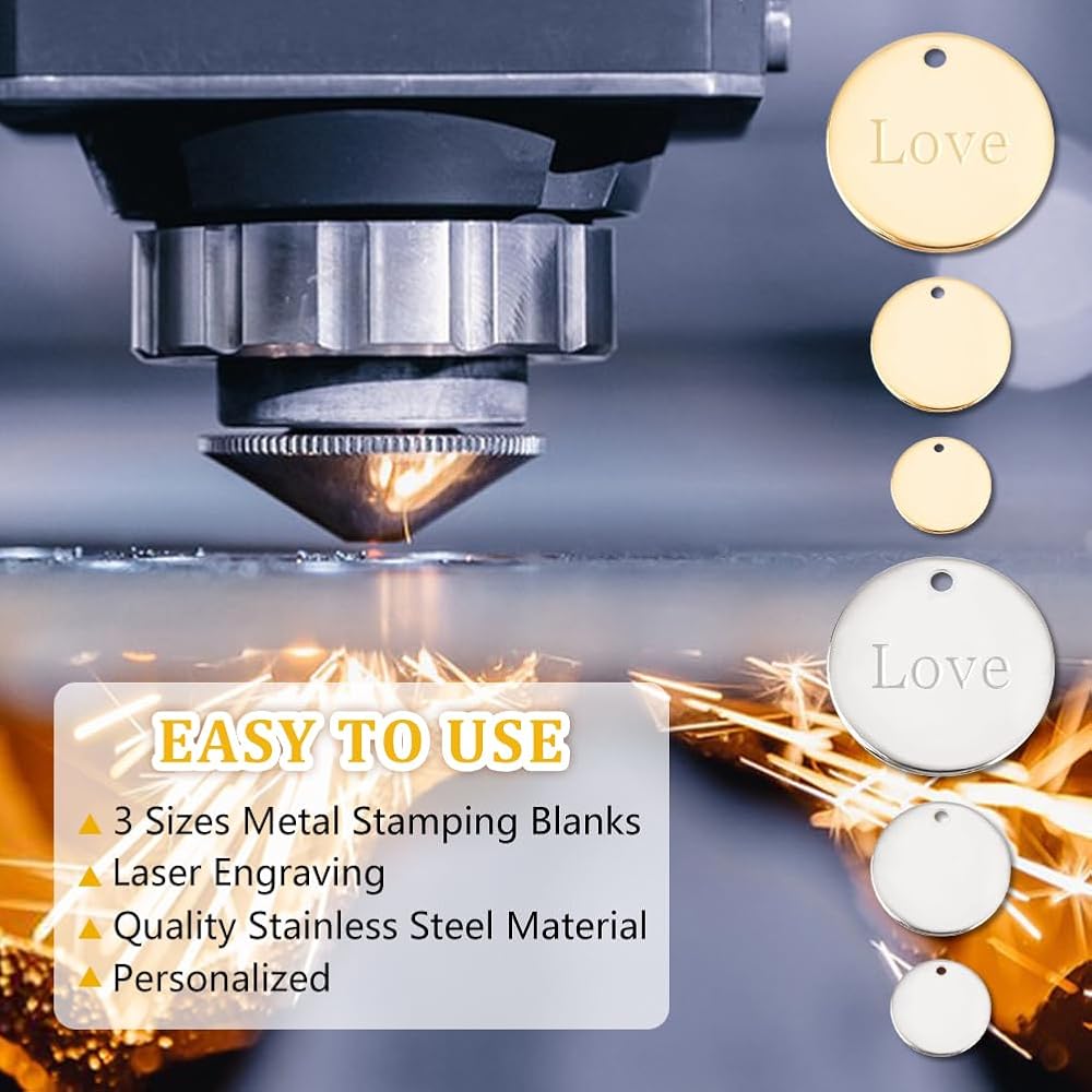 • التصميم القابل للتخصيص: توفر علامات الجولة المسطحة مع ثقب 1.2 و 1.4 مم إمكانيات لا نهاية لها للتخصيص. Laser Engrave ، أو تزيين هذه المعلقات الذهبية لإضافة لمسة فريدة من نوعها إلى كل قطعة.