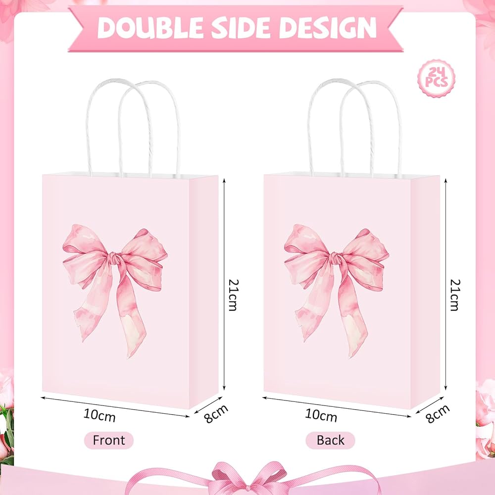 24 x Pink Bow Paper Gift Bags