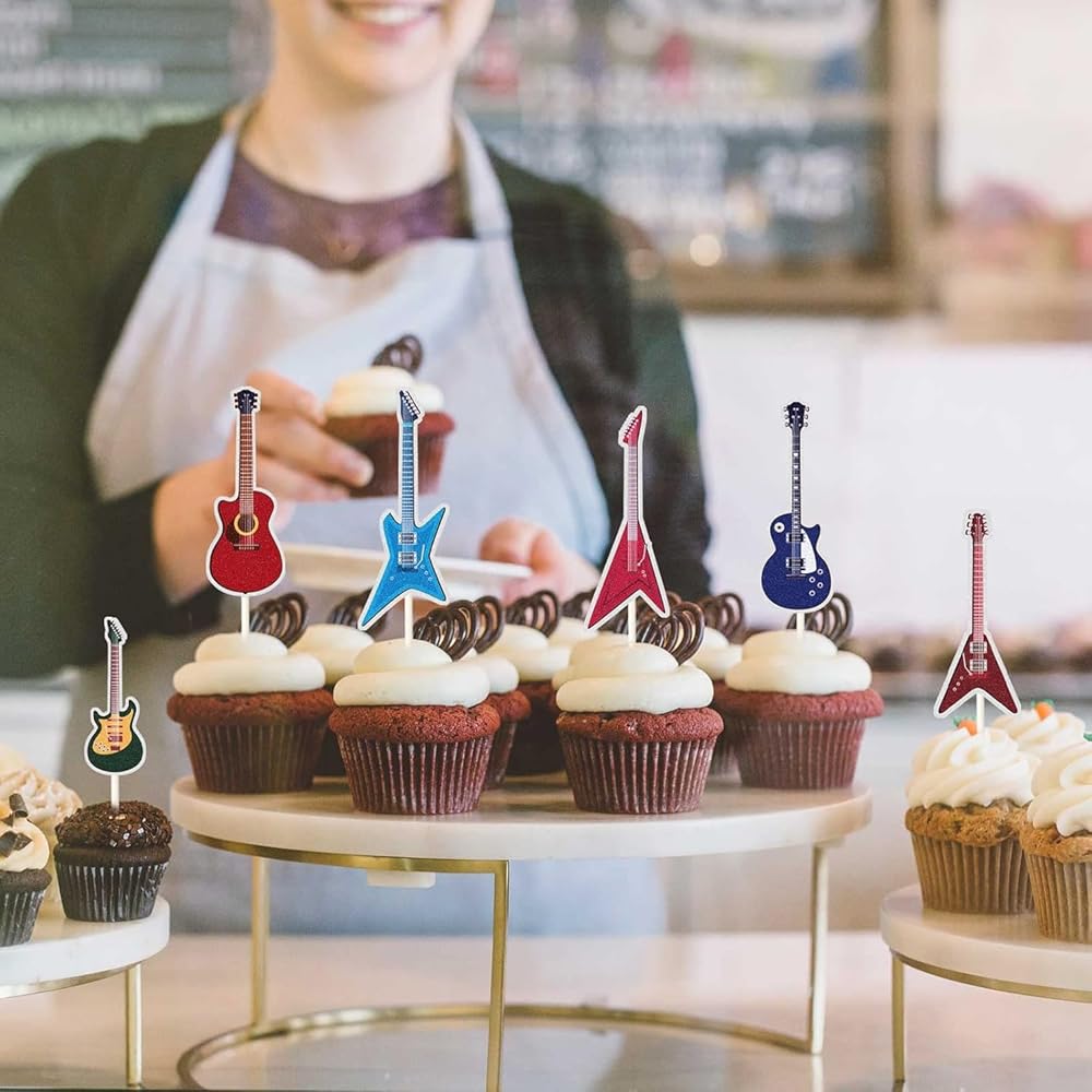 18pcs guitar cupcake toppers,6styles, 3pcs of each style.