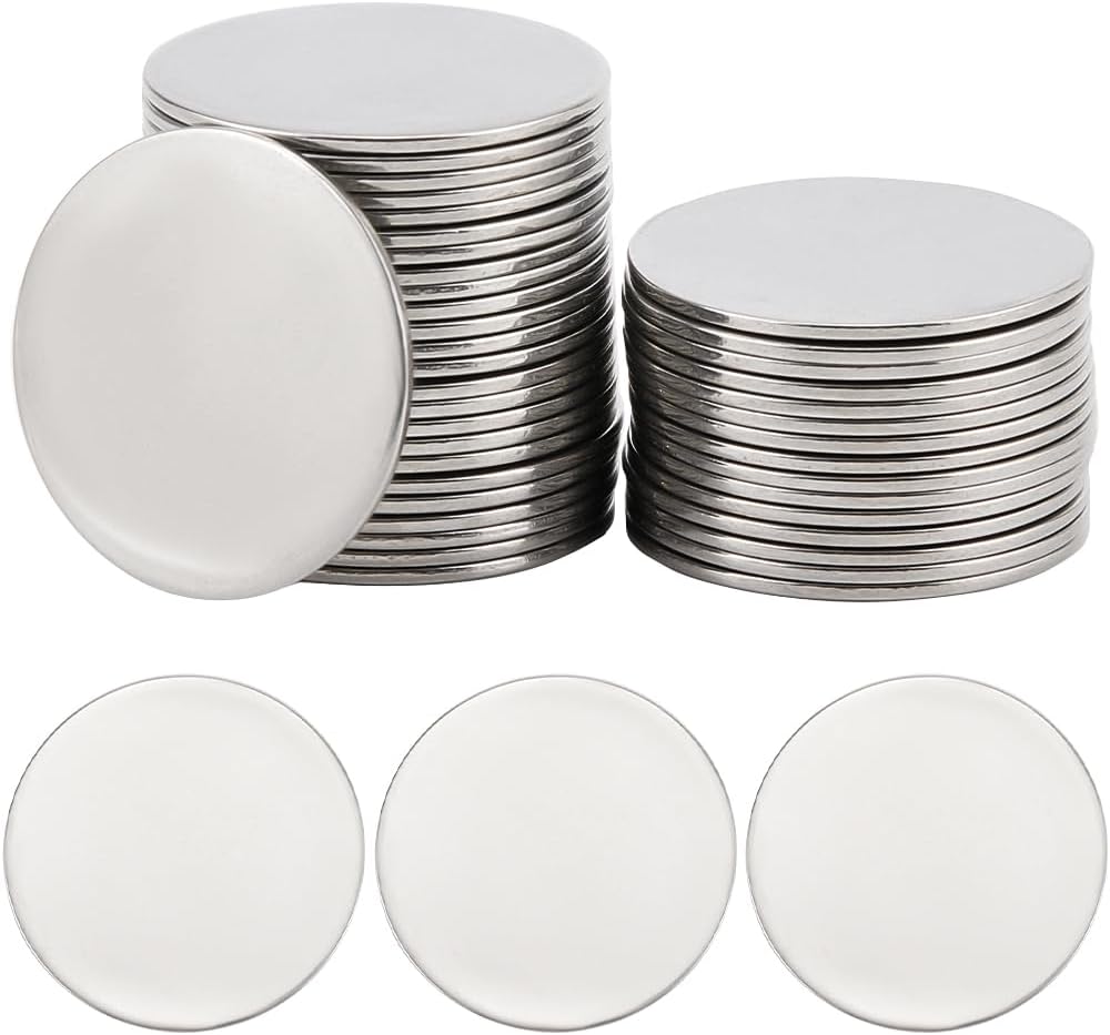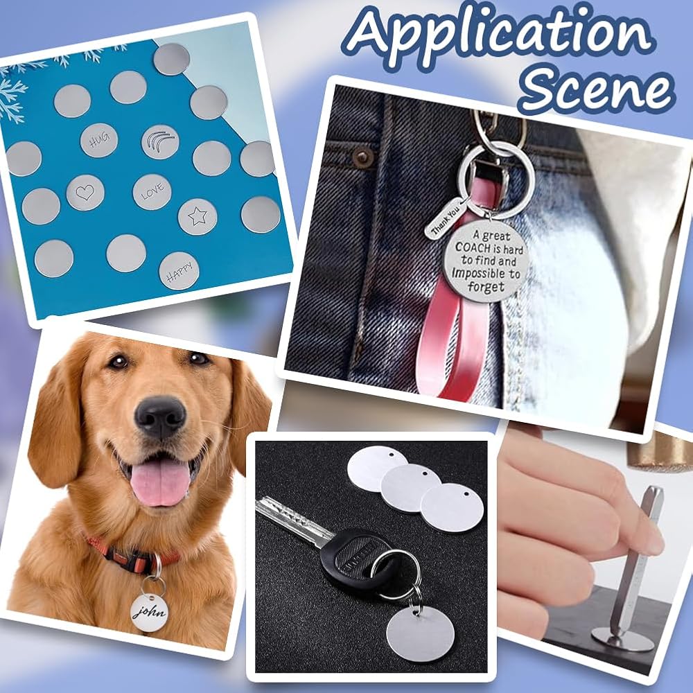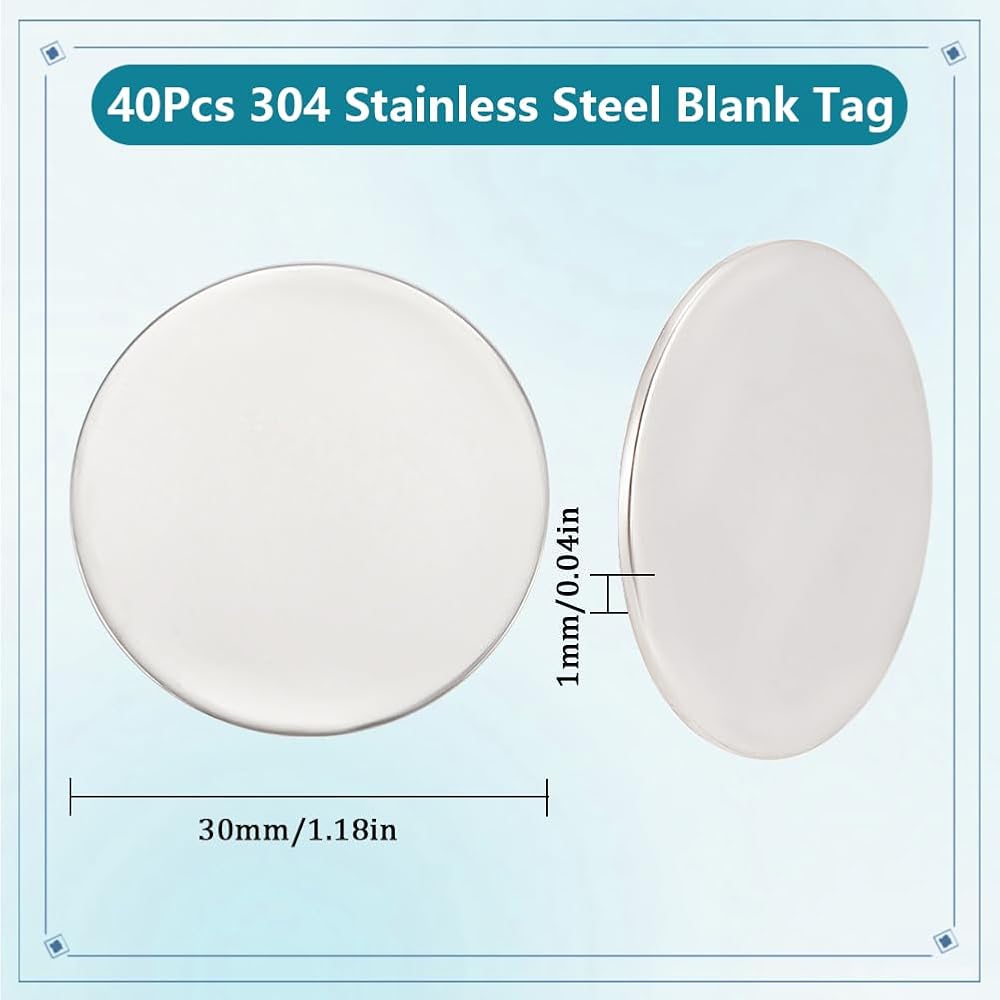 40pcs round stainless steel stamping sheets: This 25mm round engravable disc comes with a total of 40pcs. Perfect for those who like diy jewelry to use it to make your favorite jewelry