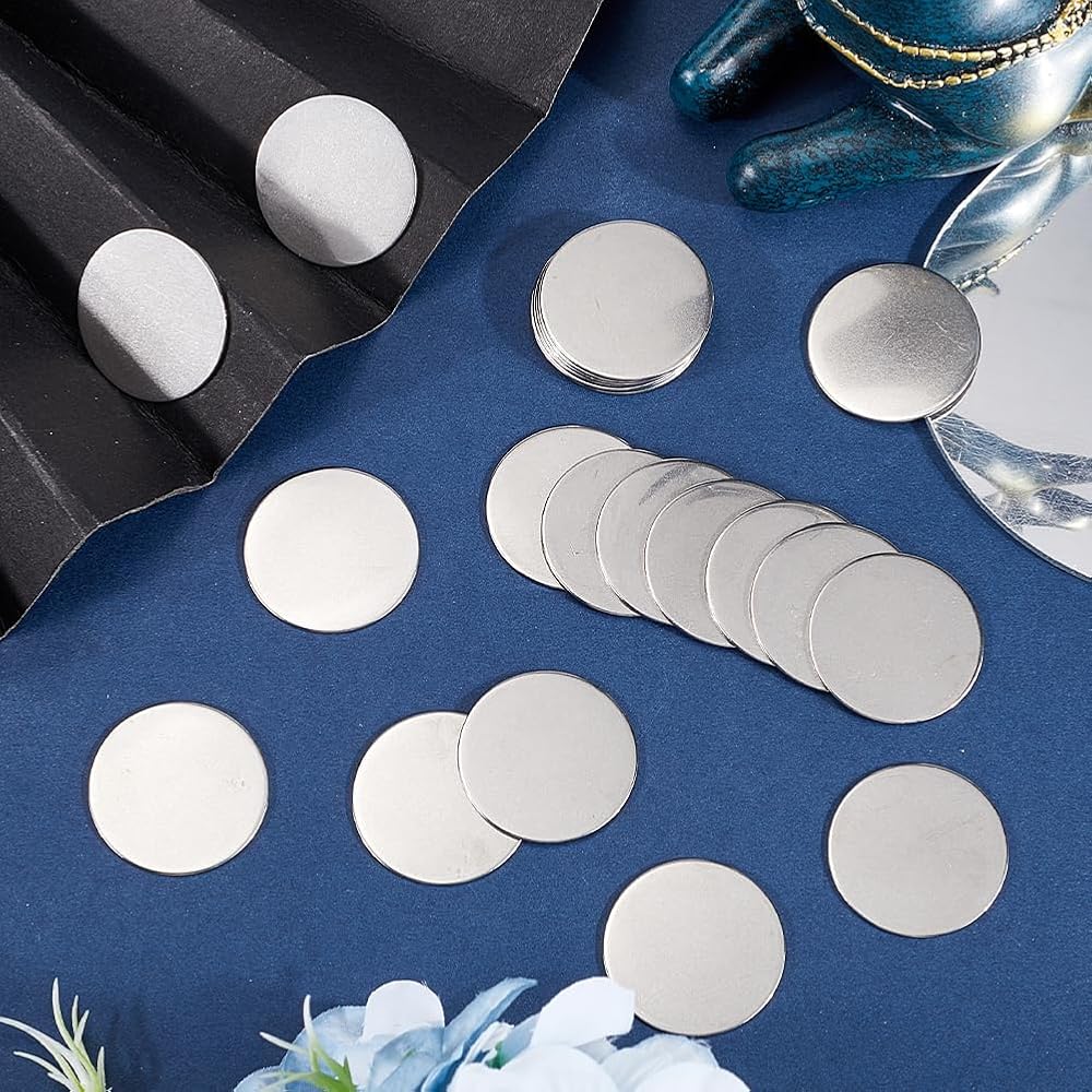 SUNNYCLUE 1 Box 40Pcs Stainless Steel Stamping Plates Stamped Metal Tag Bulk 25mm Flat Round Silver Engravable Blank Disc Patches for Engraving DIY Jewelry Craft Necklaces Earrings Making Supplies
