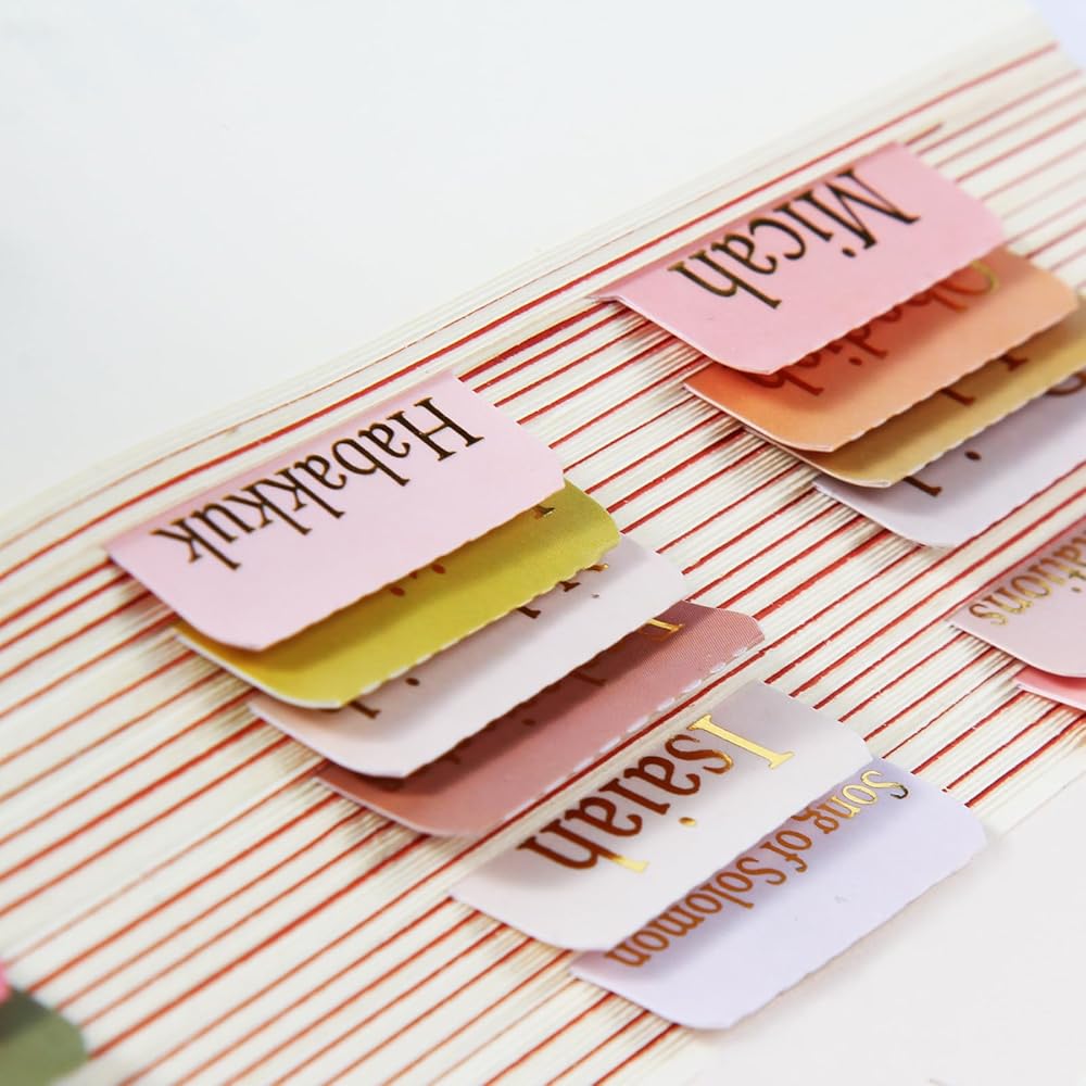 • The letters on each bible tabs are designed with gold foil embossing, showcasing a refined printing effect. This unique design not only adds a luxurious sheen but also elevates the elegance of your Bible, demonstrating exceptional taste whether for personal use or as a gift.