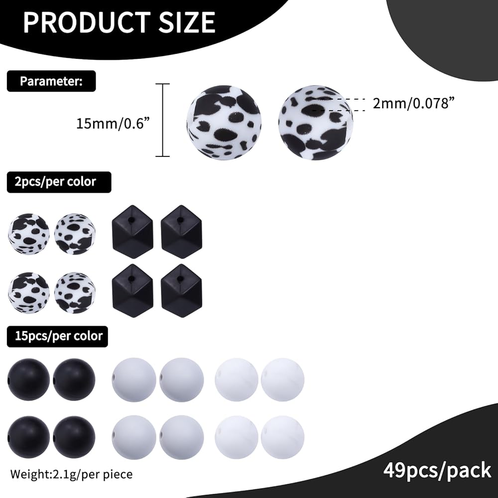 رقم وحجم الخرز: سوف تتلقى 49 حبات سيليكون ، بما في ذلك حبات السيليكون المستديرة 2 15 مم ، وحبات سيليكون متعددة المقاعد مقاس 2 14 ملم ، و 45 ملمًا من السيليكون الصلب.