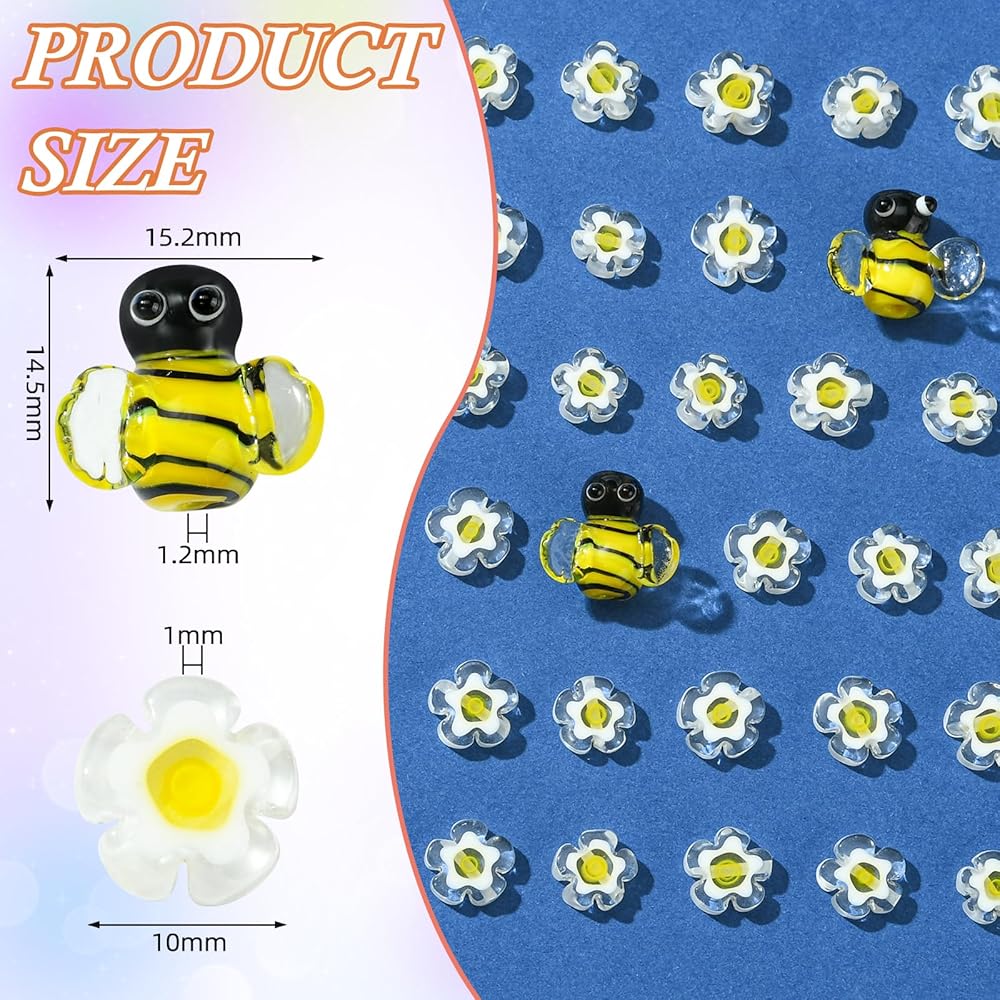 الكمية والحجم: سوف تتلقى 50 حبة زهرة و 4 حبات نحلة ، وخرز الزهور يبلغ قطره حوالي 10 مم وقطره ثقب 1 مم ؛ حبات النحل هي 15*16 مم و 1.2 ملم في الفتحة