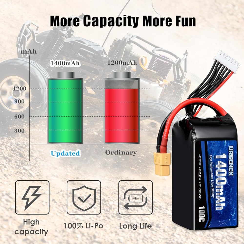 • ★ مريح وآمن للغاية: تتيح تقنيتنا العالية الشحن السريع والمستمر في أي وقت ، ولا يوجد تأثير ذاكرة الخلية بحيث لا تحتاج إلى التفريغ الكامل قبل إعادة الشحن. جميع بطاريات RC لدينا متوفرة الاستخدام في أي وقت. اختر Urgenex ، اختر القوة. يحافظ على متعةك في الذهاب لفترة أطول.