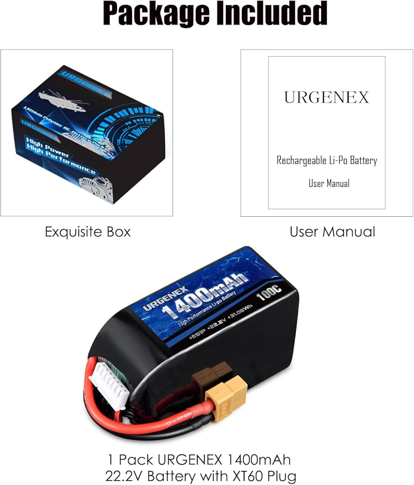 • ★ 100C معدل التفريغ المرتفع: توفر لك بطارية Lipo Urgenex 100c المزيد من الطاقة ، وهذه العبوة القابلة لإعادة الشحن جاهزة لتقديم الطاقة لك في أي وقت وفي أي مكان. توفر حزمة بطارية Urgenex RC معدل تفريغ لدفع وقت ذبابة RC بدون طيار إلى ذروة قدراتها.