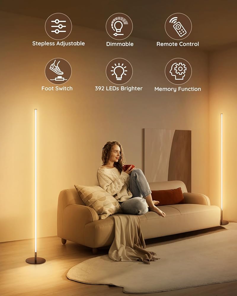 【2025 تم ترقيته】 تخيل أمسية هادئة في المنزل - قم بإسقاط الضوء إلى 10 ٪ في ليلة فيلم مريحة. أو تضيء إلى الضوء الكامل لصباح تنشيط. مع درجات حرارة ألوان قابلة للتعديل بدون خطوة من 2700 ألف دافئة إلى تهدئة 6500 ألف ، يناسب مصباح الأرضية LED Unionlux مزاجك: توهج دافئ للاسترخاء ، وضوء هش للتركيز. تخصيص مساحتك لاحتياجاتك ، ليلا أو نهارا ، مع تعديل بسيط.