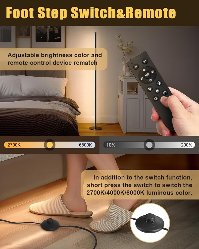 control التحكم عن بُعد/مفتاح القدم】 مع عنصر تحكم عن بُعد مريح ، يمكنك ضبط سطوع مصباح Floor Unionlux الزاوية ودرجة حرارة اللون بسلاسة وبدون خطوة أو الاختيار من بين خمسة أوضاع للإضاءة المسبقة لتتناسب مع نشاطك. استخدم مفتاح القدم للتغييرات السريعة - الفوضى بين الضوء الطبيعي الدافئ والضوء الأبيض البارد بنقرة بسيطة.
