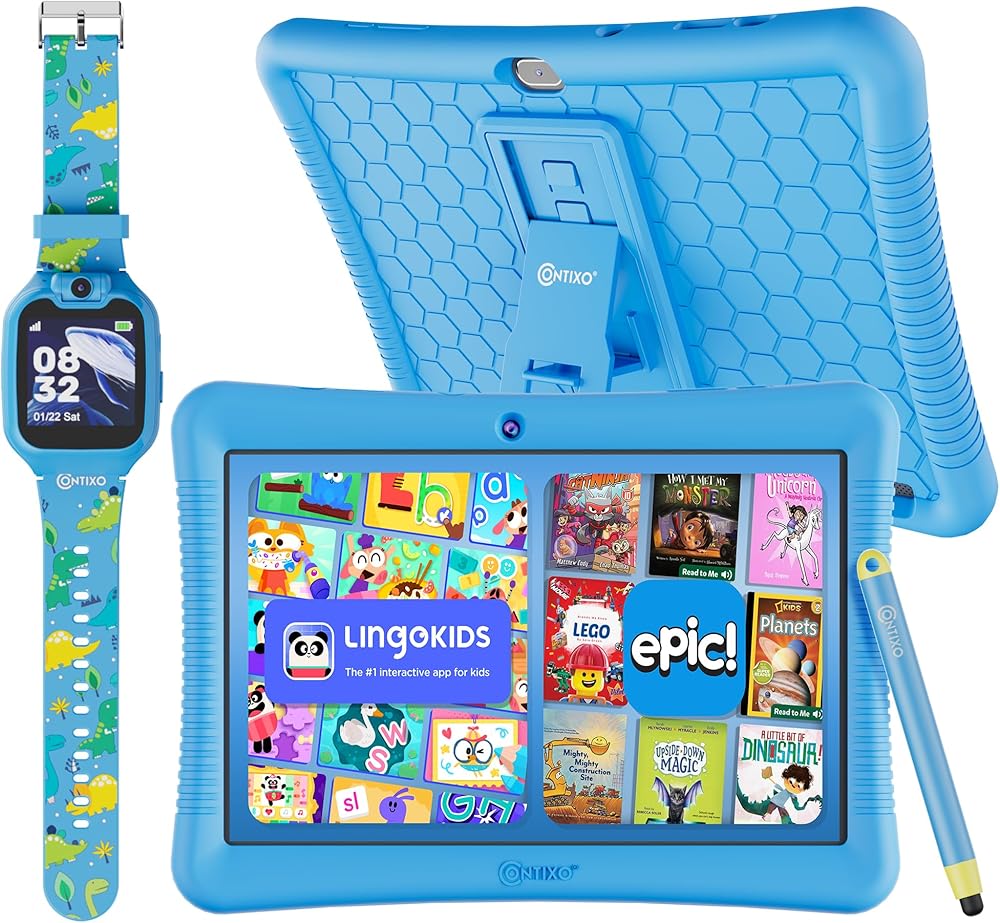 The Contixo K102 upgraded delivers the best educational tablet experience for kids and parents! The K102 tablet has built in parental controls and child lock features so you can keep your child safe while online. In addition to the Quad Core processor, 32GB storage, and dual cameras, the latest Android operating system enables faster multitasking, optimizes user interface with more conveniences and simplicity while the durable yet soft silicone case protects the tablet against minor drops and bumps caused by children at play. Valentine's Day Gift for kids.