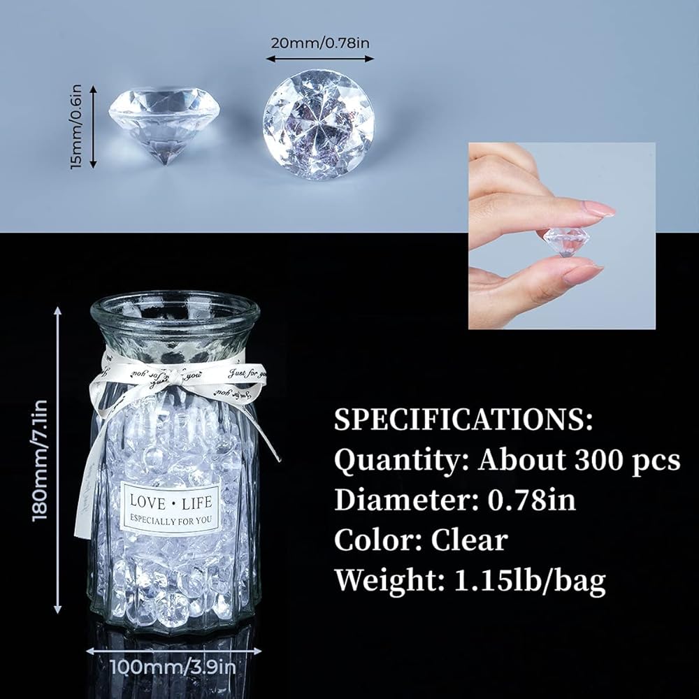 • Multi-Purpose Decorative Gems - Transform any space with 300 premium acrylic diamonds 3/4" (20x15mm). Perfect for vase fillers, wedding table scatter, birthday party favors, DIY crafts, and eye-catching table accents.