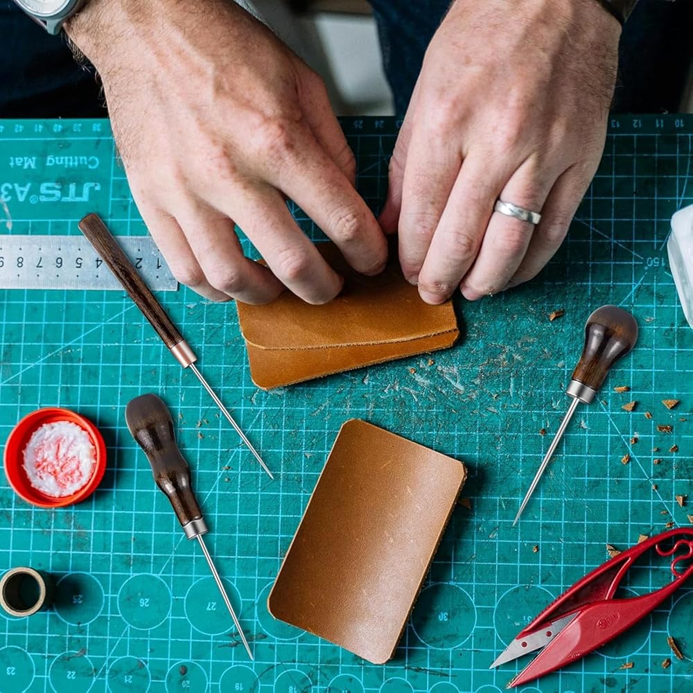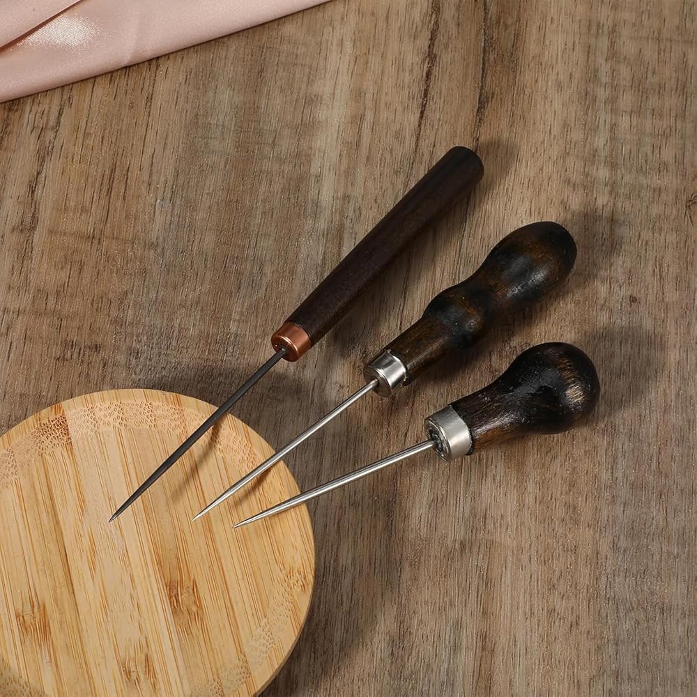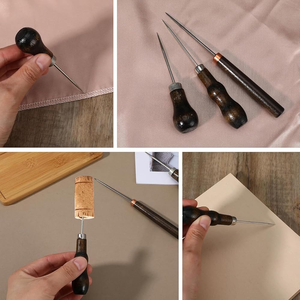 Versatile 3-Piece Kit: Includes scratch awl, leather awl, and stitching awl—perfect for leatherwork, handmade crafts, and even wooden hole punching.