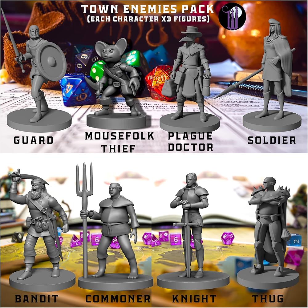 الممثلون الممتعون من شخصية لمقابلات المدينة أو NPC - المنمنمات لـ D&D التي تتوافق مع إبداع ألعابك - تسليح الشخصيات لـ D&D المستخدمة كوحوش أو أبطال أو NPC. شخصيات لا تنسى للأبراج المحصنة والتنين وغيرها من TTRPG