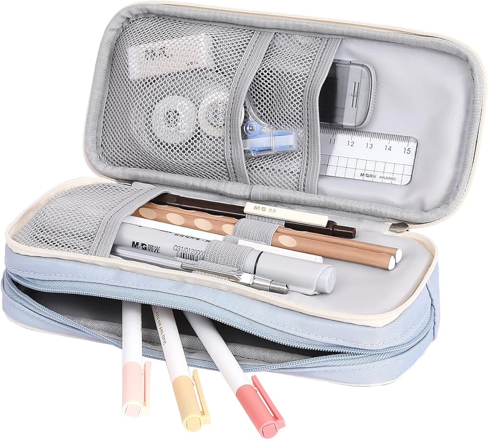 • 【Convenient Design】: Nylon fabric with large capacity space of 3 compartments to separate organize your different items.It's not only a pencil pouch but also can be used for other purposes. Multi-purpose as a pen, pencil, or brush case, make-up bag, personal office, and so on.It's a nice gift for adults, writers and artists for graduation, birthday present, or travel supplies.