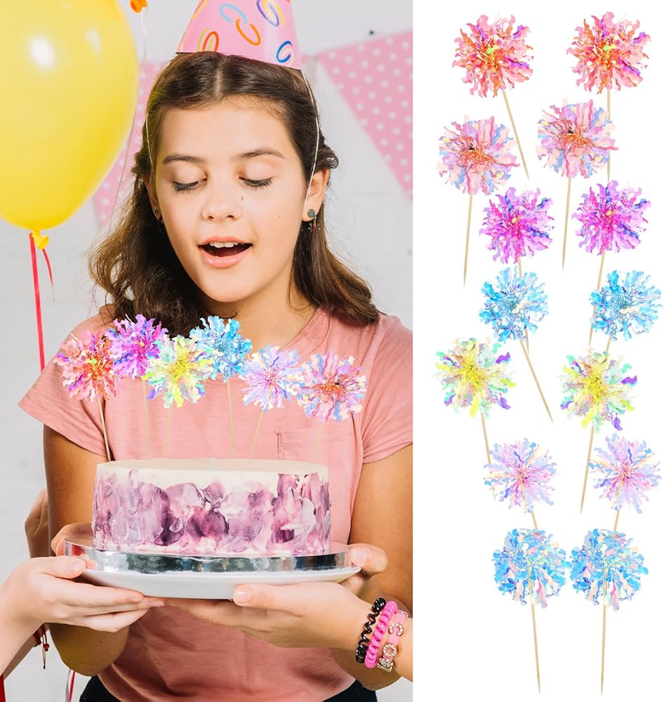 Large Quantity: We provide 14 cake picks in 7 different colors, orange/rose red/pink/colorful white/blue/purple/yellow, enough to meet your banquet needs. You can insert cake topper sticks on birthday cakes, which will increase the elegance and gorgeousness of the cake. Different colors of food picks will also bring different visual effects.