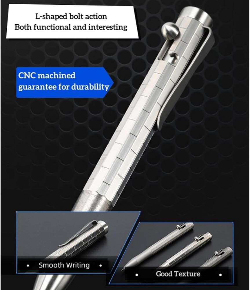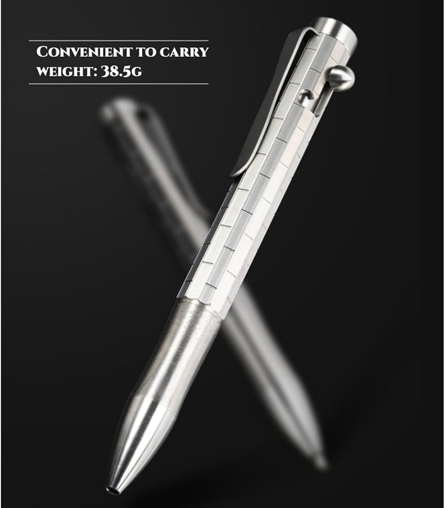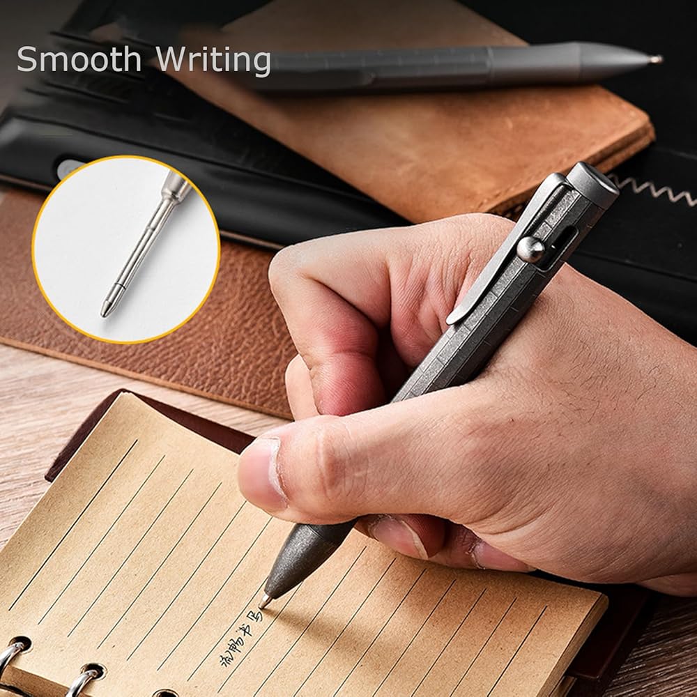 • The smooth bolt action mechanism of this titanium retractable pen operates flawlessly, providing a satisfying experience when you use it. With precise control over the pen refill, you can confidently write without worrying about ink leakage or smudging.