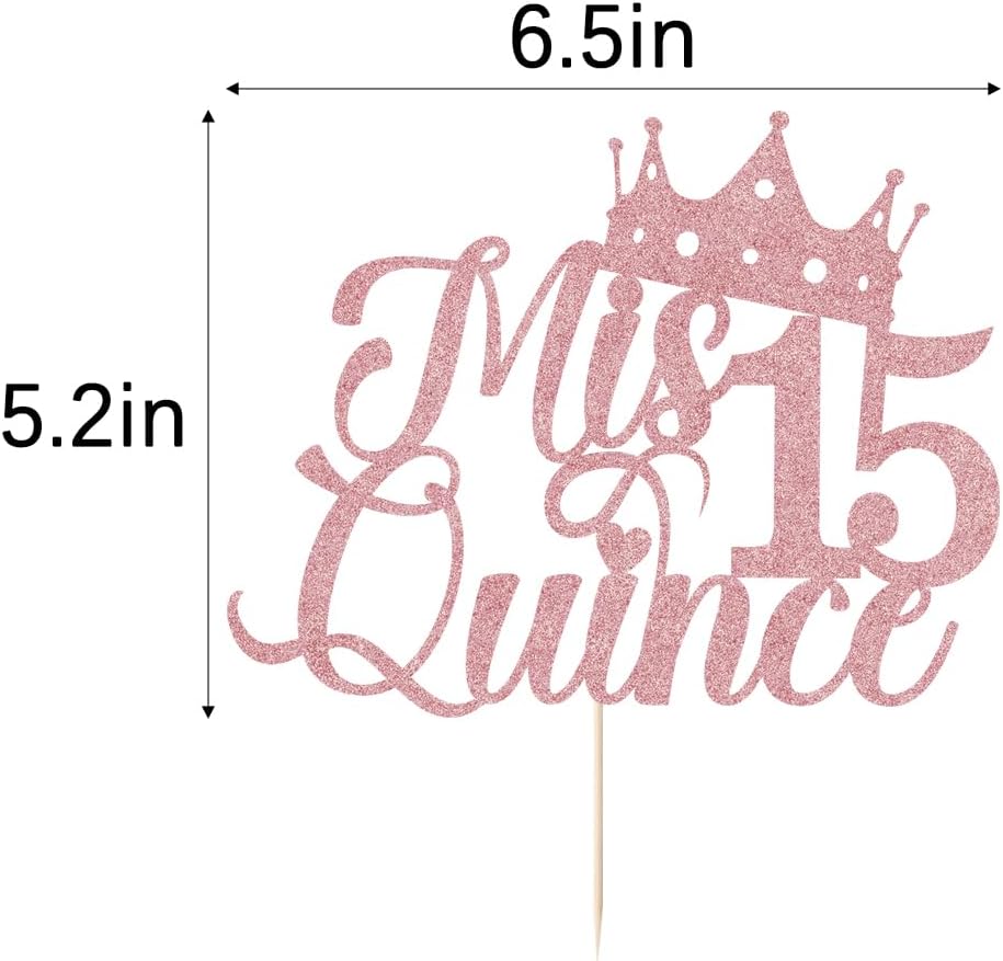• 【What you will get】1 Pcs Gold Glitter Mis Quince 15 Cake Topper.This cake topper is the perfect decoration to welcome your friends to your birthday Party.